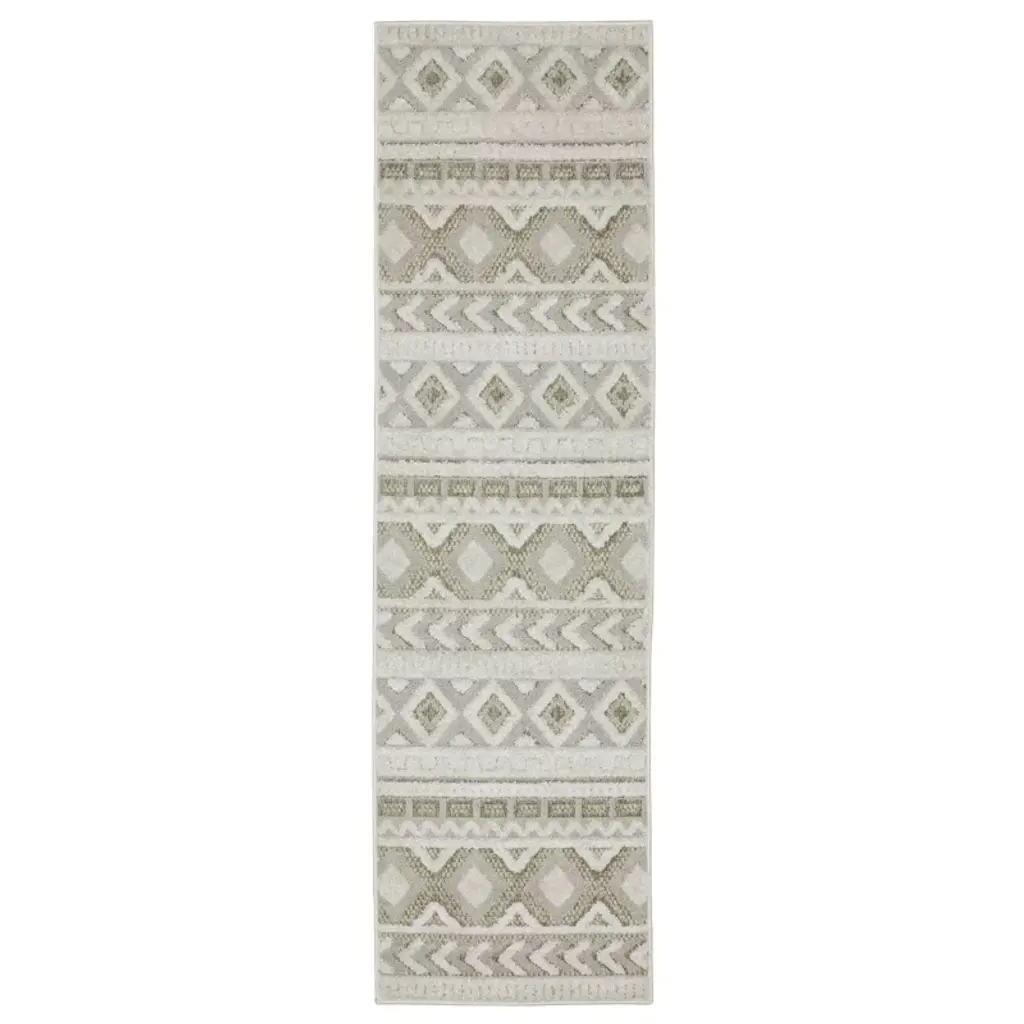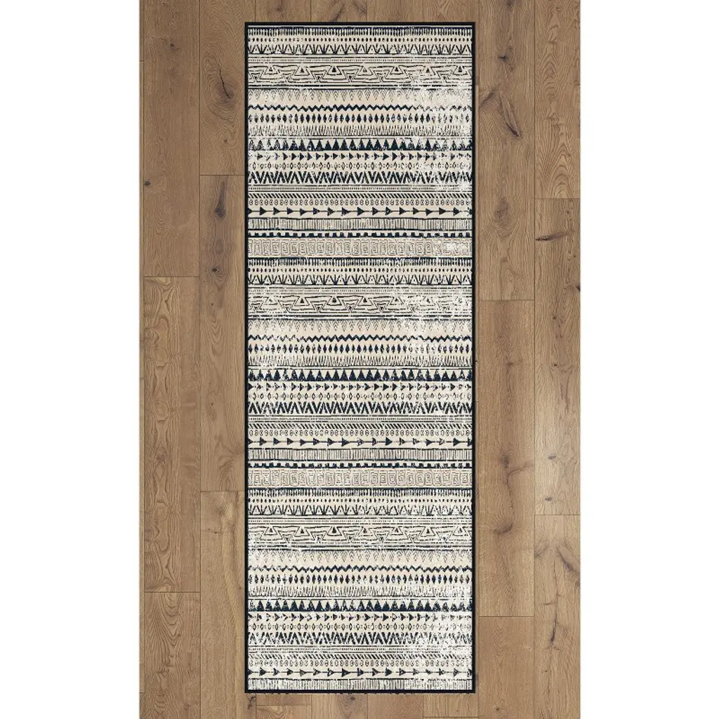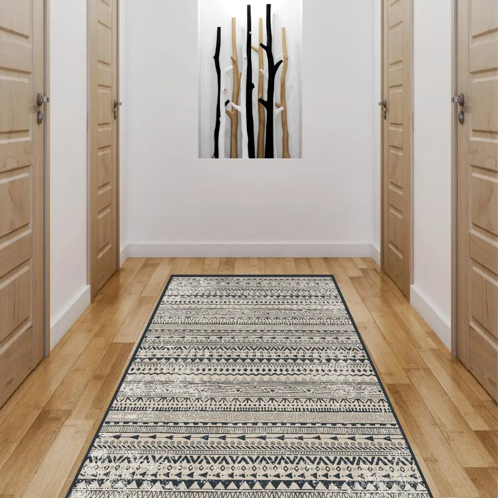 Art does not have to be displayed exclusively on walls. Let your floors show off some flair too! Add some boho chic to your home dcor with this area rug. Featuring a Bohemian pattern with a slightly distressed finish against a neutral ivory background, it will stand out in any space. Machine tufted with durable synthetic fibers, it has a soft and comfortable texture, does not shed, and is easy to clean. Its low .25 pile makes it ideal for high traffic areas of your home and will not obstruct doorways. A slip resistant latex backing keeps the area rug safely in place. Whether you display it in your living room, bedroom, home office, dining room, foyer, or nursery, itll bring your home dcor to the next level.