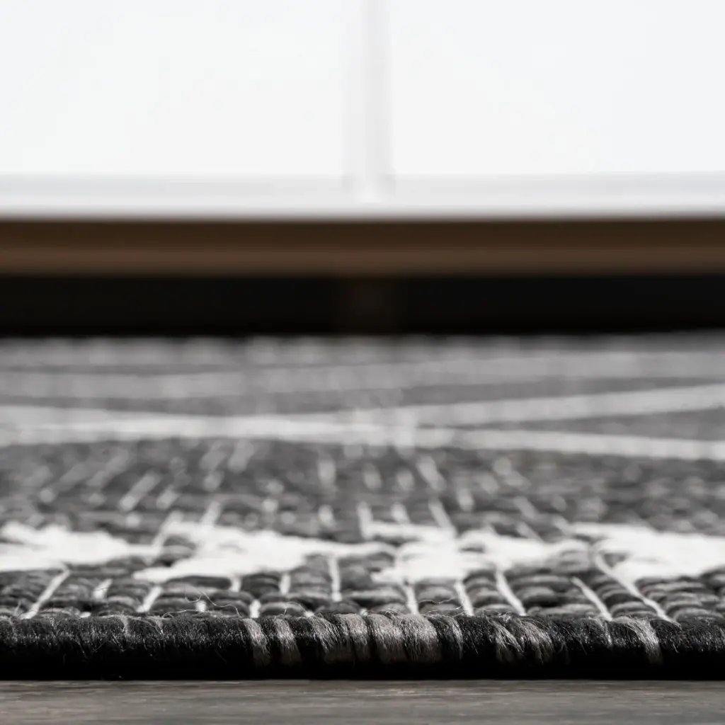 Moroccan influences abound in the geometric design of our tribal-inspired rug. The traditional diamond trellis pattern has the handwoven look popular in mid-century modern interiors. Add graphic impact to a modern living room, dining room, bedroom, kitchen or entry, and create your Boho-chic story with this easy-care rug.Features:• Power loomed with a 0.19" pile that''s soft and durable• The soft black and ivory color scheme adds mid-century modern flair to this tribal design• Made from easy-care polypropylene - just sweep, vacuum or hose down with mild soap and water• 100% Polypropylene• No backing, use of rug pad is recommended (sold separately)• Power Loomed in Turkey• Actual Dimension: 2 ft. 2 in. x 8 ft.• Color: Black/Ivory• Thickness measures: 0.19 in.• Available in multiple sizes and/or colorsRug Care:• Vacuum regularly and spot clean as needed; avoid direct and continuous exposure to sunlight; use brushless vacuum; remove spills immediately; if liquid, blot with clean, undyed cloth by pressing firmly around the spill to absorb as much as possible; for hard to remove stains, professional rug cleaning is recommended; store in a dry, well ventilated area and rotate for consistent wear• Packing and shipping may cause temporary creases in rugs, which will flatten out after a week on the floor; to expedite the process, try back-rolling your rug before laying it down, and then allow ample time for the remaining creases to relax• Please Note: Due to differences in monitors, some rug colors may vary slightly. Lengths and widths may vary from the published dimensions. Patterns may vary slightly according to shape and size selected.