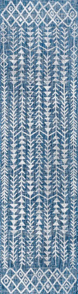 Derya Tribal Diamond Trellis Indoor/outdoor Blue/ivory 2'x10' Runner Rug