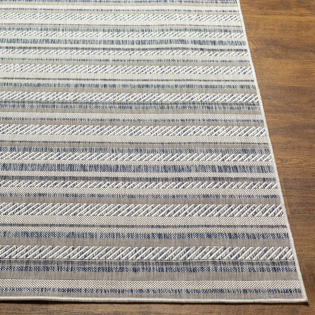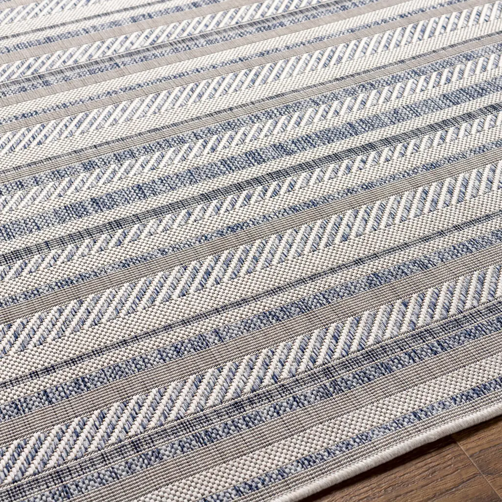 Collection: Dumalag Colors: Blue, Gray, Navy, Taupe, Medium Gray, OffWhite Construction: Machine Woven Material: 100% Polypropylene Pile: No Pile Styles: Transitional,Bohemian Outdoor Safe: Yes Made In: Turkey Thickness: 0.16" Price Range: $$$$$ (Most Affordable)