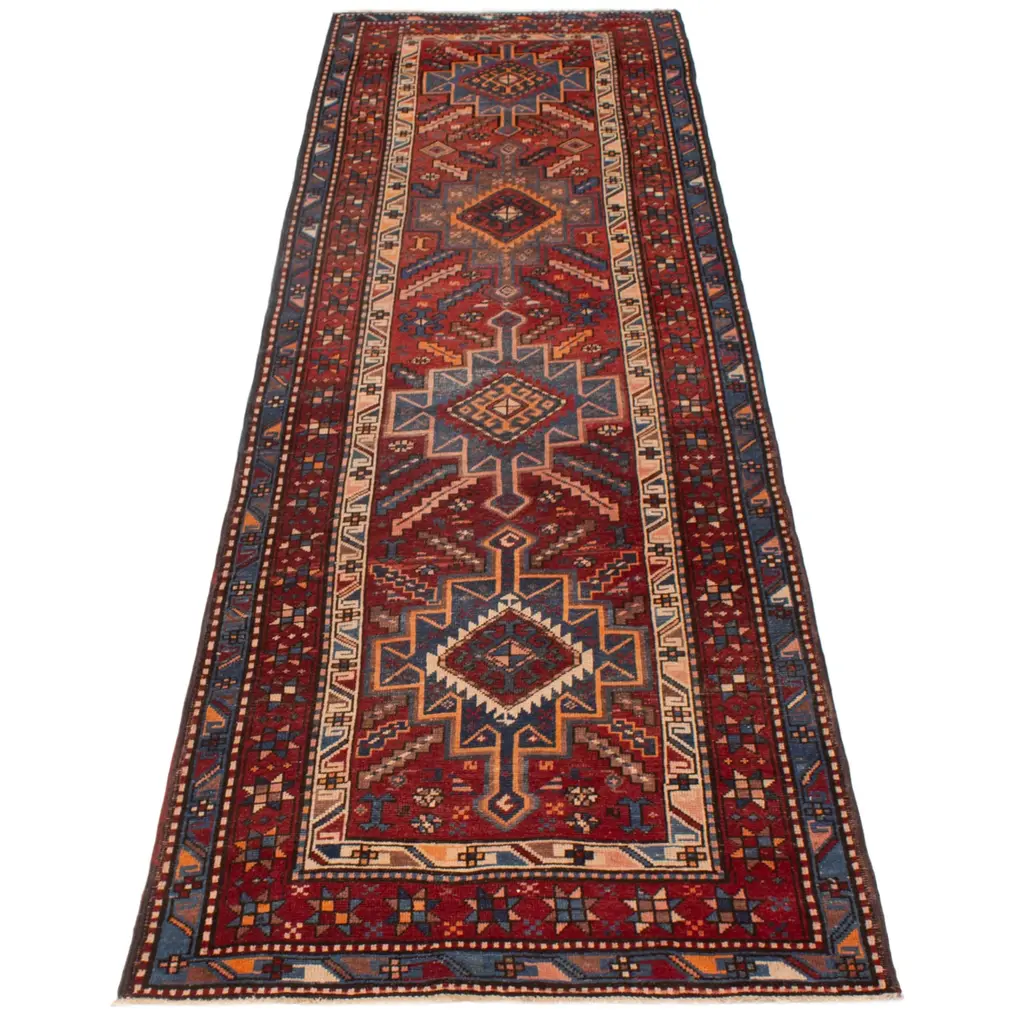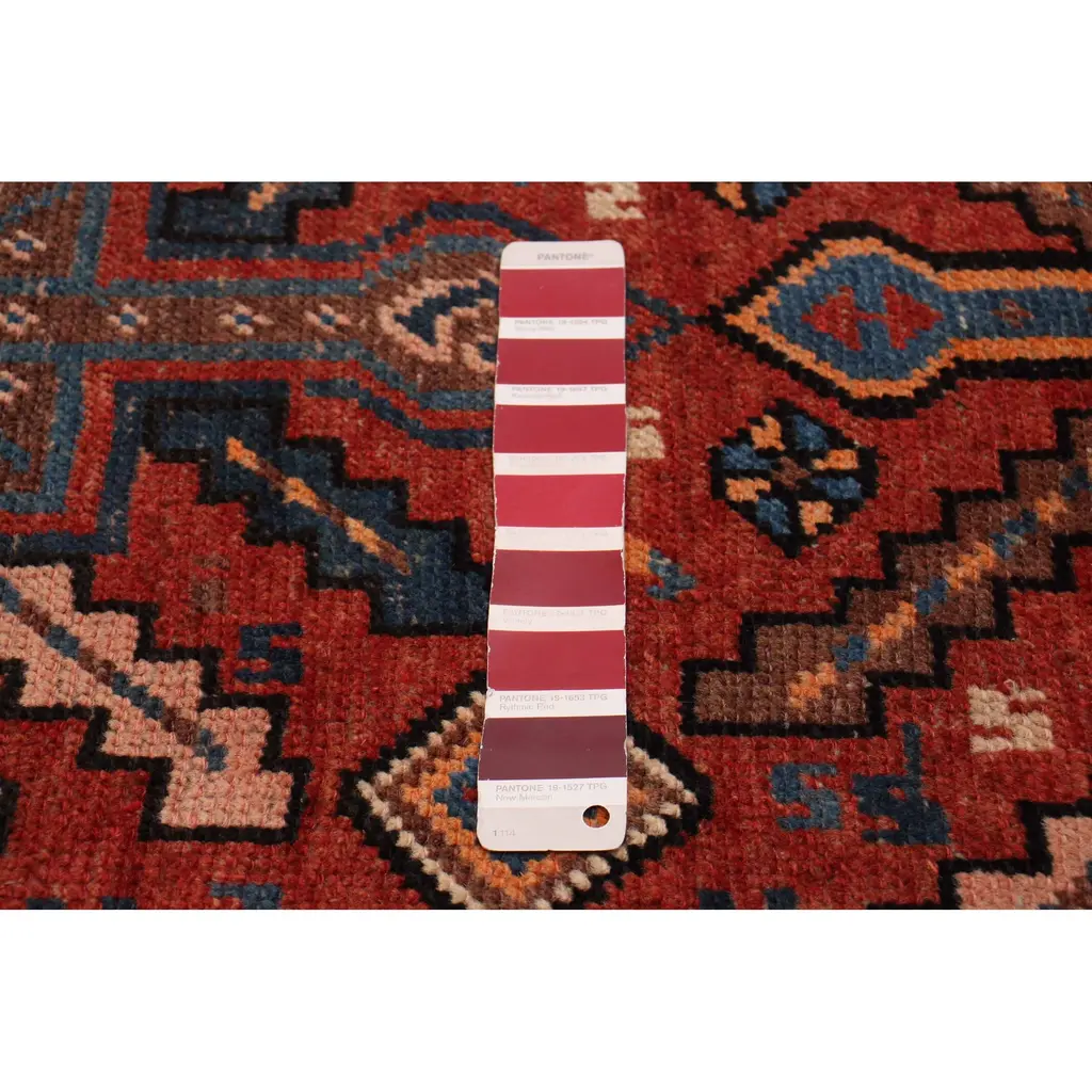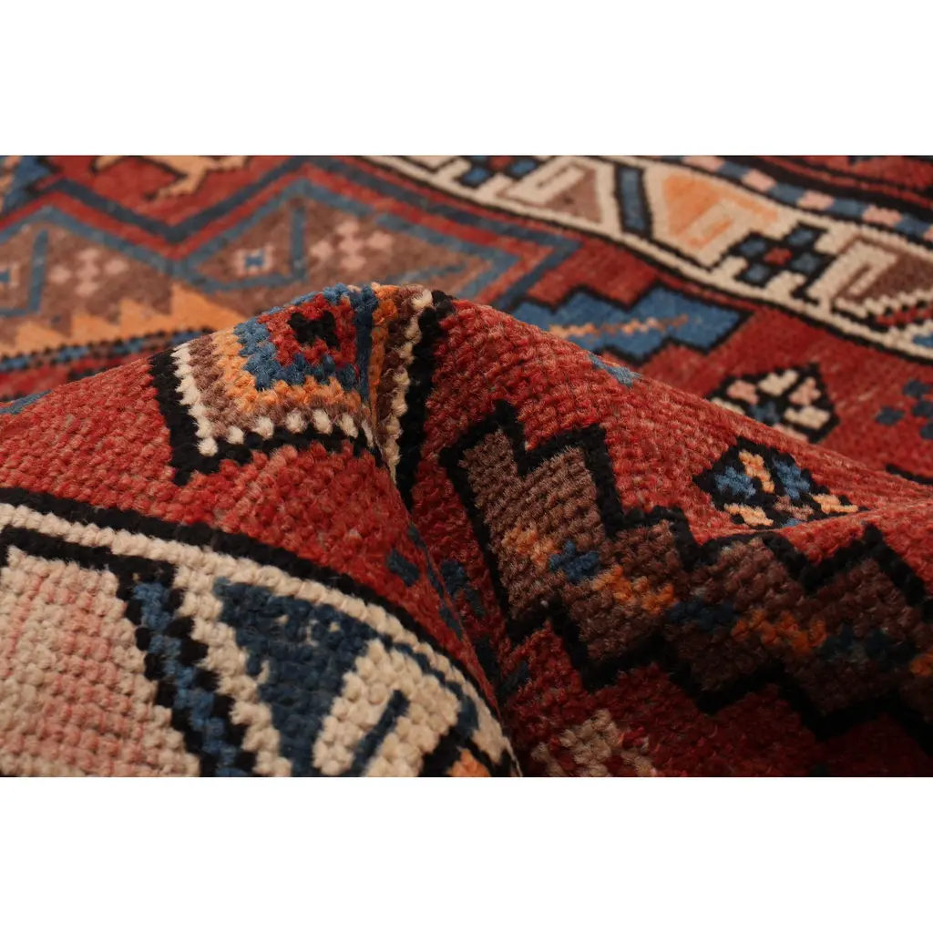 Splendid piece of work that is woven in Turkey with a re-interpretation of village Persian designs. This Persian Style rug is rendered in no way inferior by the fact that the style is copied from the geometric design of the Persian Hamadan, Persian Ardabil and Persian Meshkin rug. Soft, chromatic and grounding, this Persian Style rug brings rich pile and depth of color into rooms through its lustrous wool.Primary materials:100% Wool / 100% CottonPile height:Approx 0.25 InStyle:Bordered,Geometric,TribalPrimary color:Dark RedSecondary colors:Beige, Black, Blue, Cream, Dark Red, Grey, Light OrangePattern:GeometricTip: We recommend the use of a non-skid pad to keep the rug in place on smooth surfaces.All rug sizes are approximate. Due to the difference of monitor colors, some rug colors may vary slightly. Overstock.com tries to represent all rug colors accurately. Please refer to the text above for a description of the colors shown in the photo.