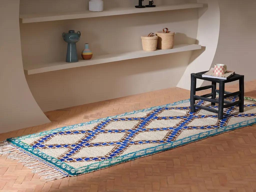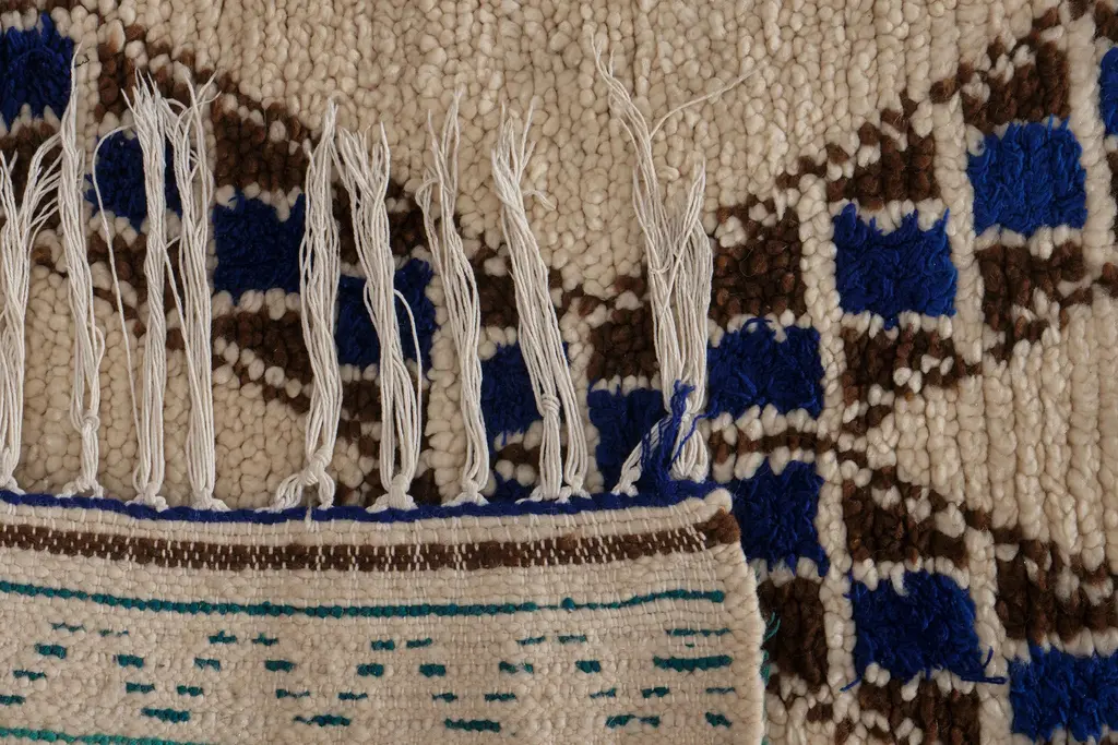 Our Moroccan pieces are each one-of-a-kind. Much of our collection was woven between 30 and 100 years ago, and curated by us. Other rugs in our collection are fresh off the loom and made with traditional techniques. Moroccan rugs don’t come with a key. As with any painting or poem, their motifs have many subjective interpretations. Originally made for personal use, these rugs took months to weave, documenting a shifting tide of events and emotions in the weaver’s life.