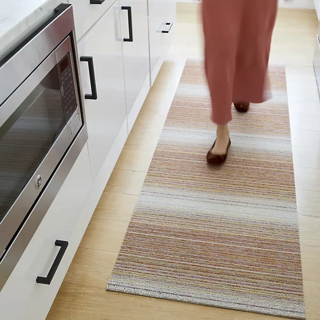 Stylish and soothing. The Fade Stripe Shag Floor Runner is a contemporary design from Sandy Chilewich for Chilewich. Featuring a gradient of monochromatic color schemes, the aesthetic is calming and inspirational. Composed of Terrastrand yarns with 25% renewable vegetable content, it’s also quick drying, mold, mildew, and chlorine resistant, 100% phthalate-free, and made in the USA. It’s perfect for indoor or outdoor use and can blend into many décor schemes.