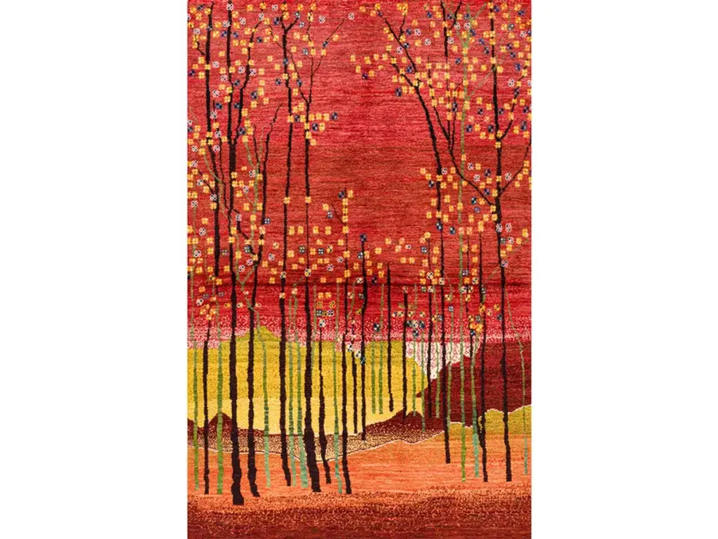 Flora and Mythical Fauna on Stripes 4 Runner is a rectangular wool rug.Zollanvari Super Fine.Trees, flowers and animals (principally lions) are design themes that are used by tribal women to weave some of Zollanvari’s most original Gabbehs. The weavers are given patterns and colour ranges (often inspired by ancient and archaic patterns such as the ‘Tree of Life’) but have a free hand in producing these works of woven art using their imaginations and the traditional design vocabulary passed down through each new generation of weavers. This makes each Gabbeh unique and individual. Flora & Fauna design Gabbehs are also available in Zollanvari Super Fine (Kashkuli, Luribaft and Bulurbaft) and Zollanvari Fine qualities.The designs are available in custom and bespoke sizes and colours.