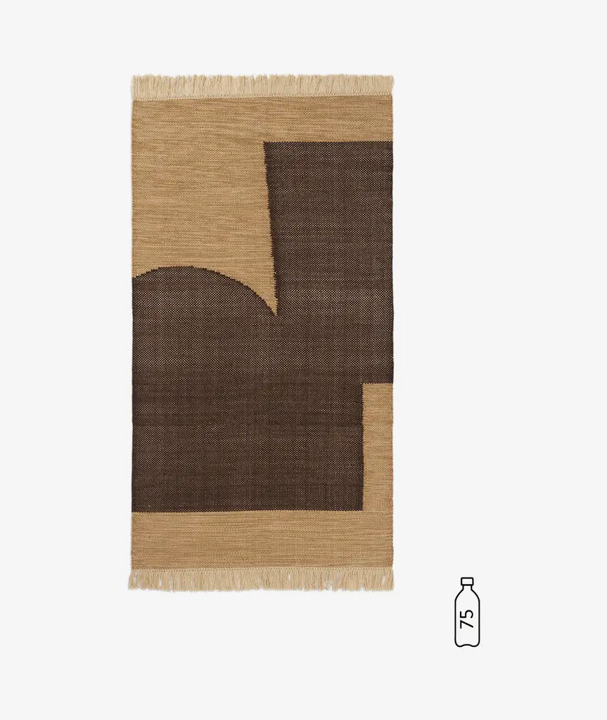 The Forene Rug, with its pattern of abstract shapes, lends a unique and modern aesthetic to your space. Handwoven with a PET yarn spun from recycled post-consumer plastic it's designed for durability and suitable for both indoor and outdoor use. The rug's captivating design brings a distinctive and elegant touch to any space, seamlessly blending practicality with contemporary style.