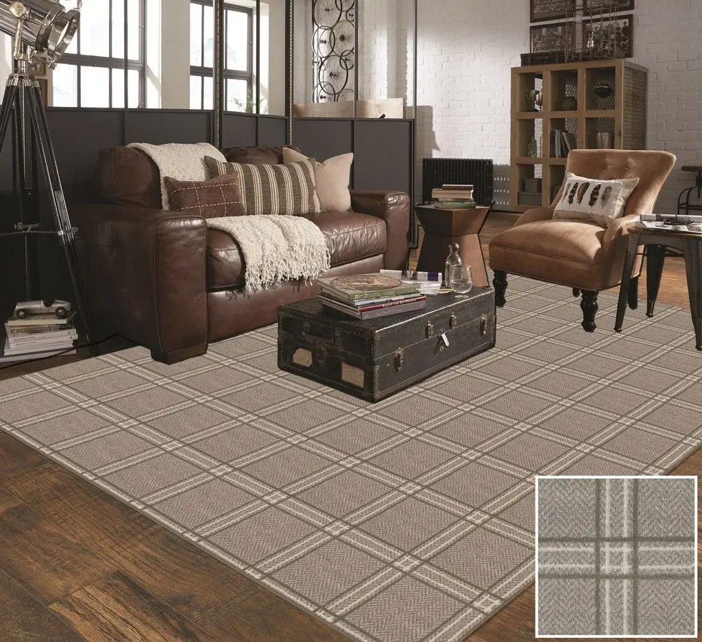 Fossil Herrington Plaid Area Rug Milliken Tactesse Nylon, Rnd 11'