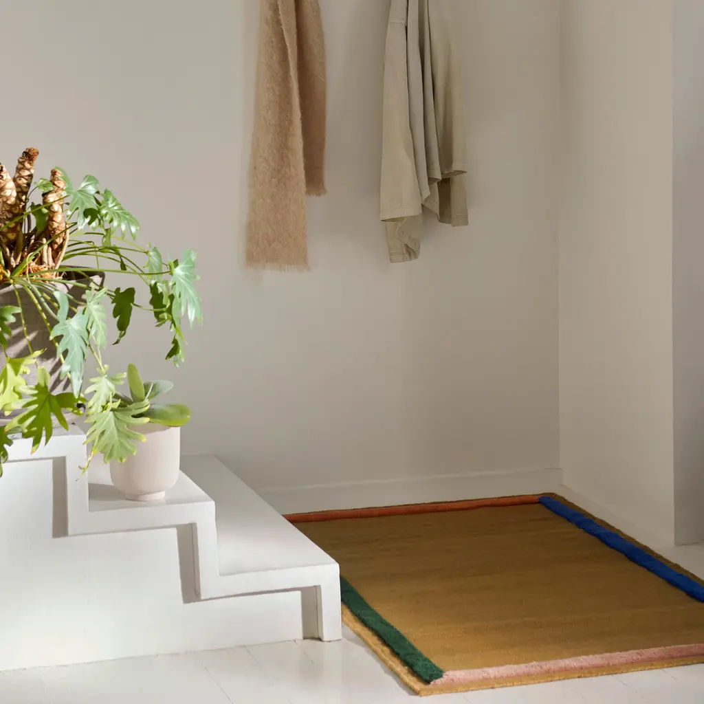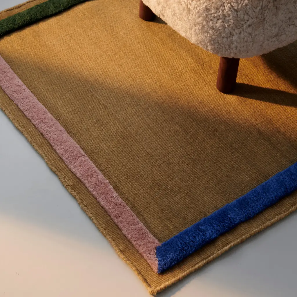 Edged in multihued bands of color, &Tradition offers an area rug and a long runner option in its handloom-woven Cruise rug series. Rendered in high-quality wool with bamboo silk and a touch of viscose for a discreet sheen, AP13 and AP14 are available in 2 colorways—a neutral sisal or intriguing plum, each with tonally complementary accent borders. The dense, velvet-like feel brings richness and finesse that melds with a range of room settings.