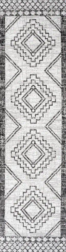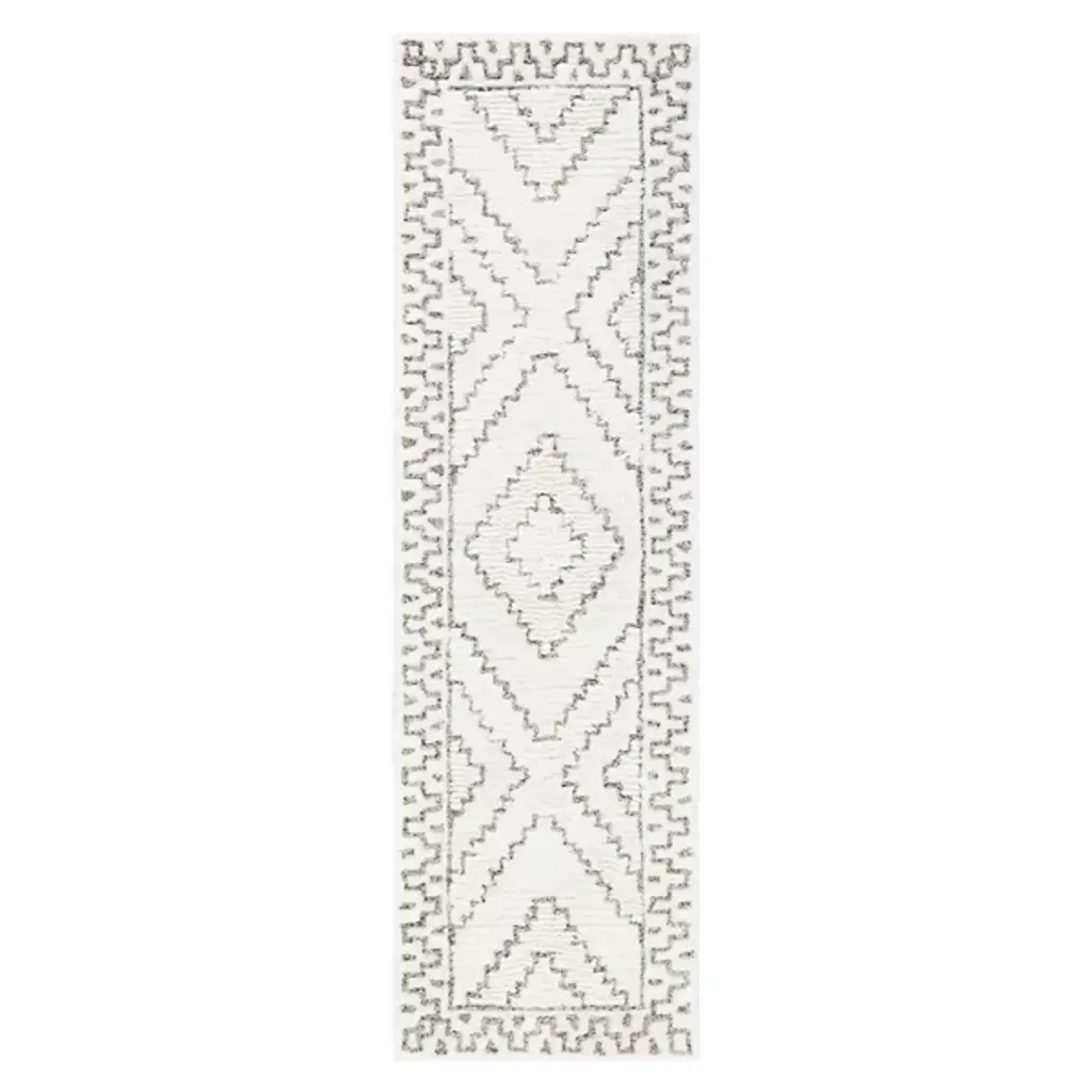 The Fydor Runner Rug from Alder & Ore is geometric poetry on a bohemian canvas. A rich wool, polyester, and cotton blend hand-tufted in India, this artisanal masterpiece features delicate dark lines dancing across a pale background. An elegant rectangular frame embraces a stylized inner diamond, creating a mesmerizing interplay of shape and texture.