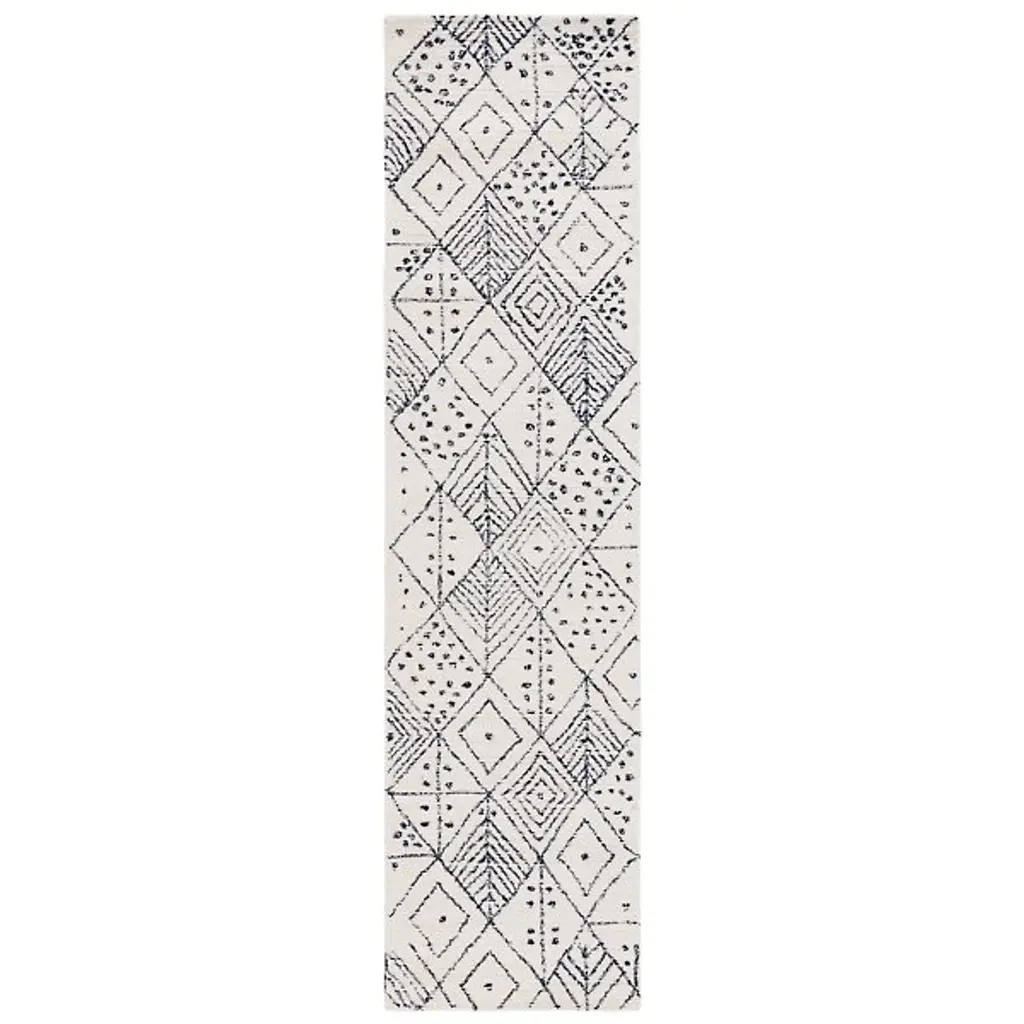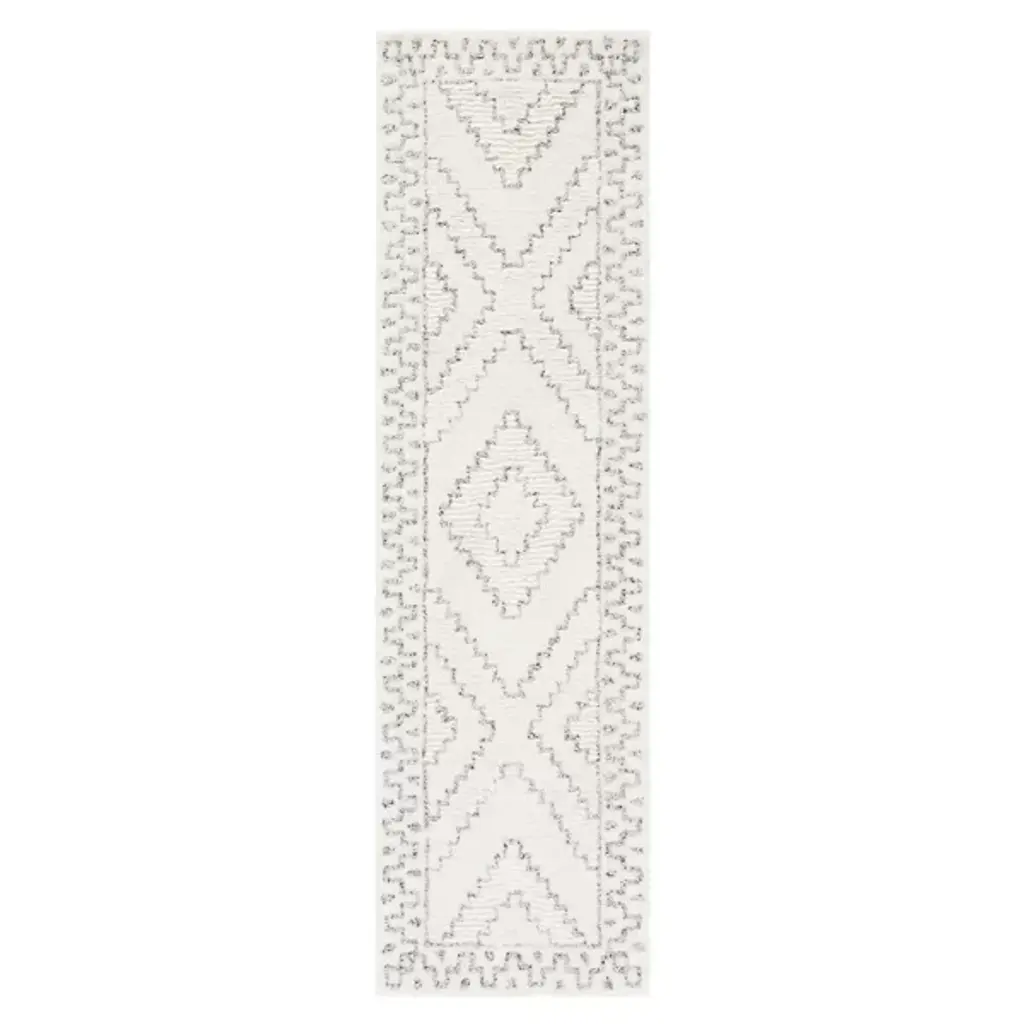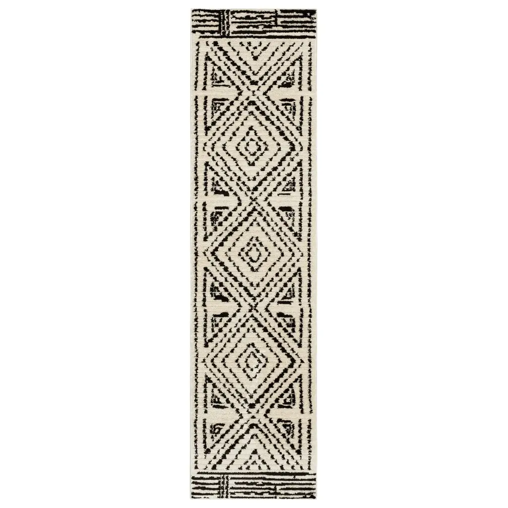 The Fydor Runner Rug from Alder & Ore is geometric poetry on a bohemian canvas. A rich wool, polyester, and cotton blend hand-tufted in India, this artisanal masterpiece features delicate dark lines dancing across a pale background. An elegant rectangular frame embraces a stylized inner diamond, creating a mesmerizing interplay of shape and texture.