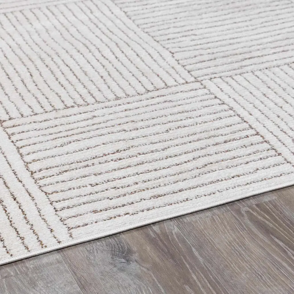 Brand: Livabliss (Surya)Collection: Galey Alix x Livabliss Colors: Ivory, Dark Brown Construction: Machine Woven Material: 100% Polyester Pile: High Pile Pile Height: 0.55" Styles: Contemporary Made In: Turkey Thickness: 0.63" Price Range: $$$$$ (Most Affordable)