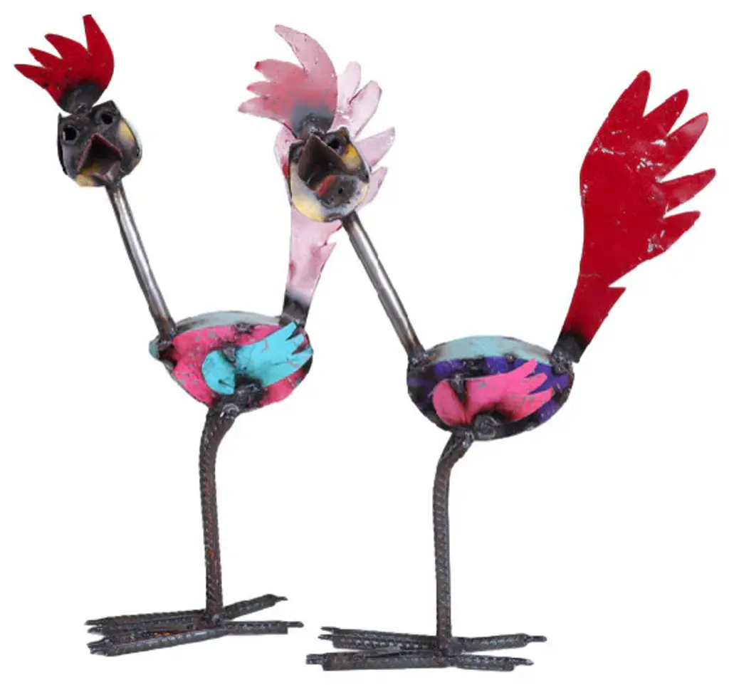 Our garden metal roadrunner is super colorful and measures 12"Wx18"Hx4"D. Since this is a rustic piece out of rustic metal it will have dents and scratches. All pieces are one of a kind, no two will be alike. This piece is great for any room including the outdoors. If you wish to hang it outside, a very thick coat of polyurethane sealer will keep it intact.