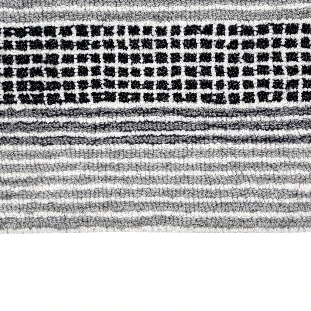 George Towne Living Stylish Lines Luxury Handmade Abstract Wool Area Rug - 2.6'x8' Runner - Charcoal/cream
