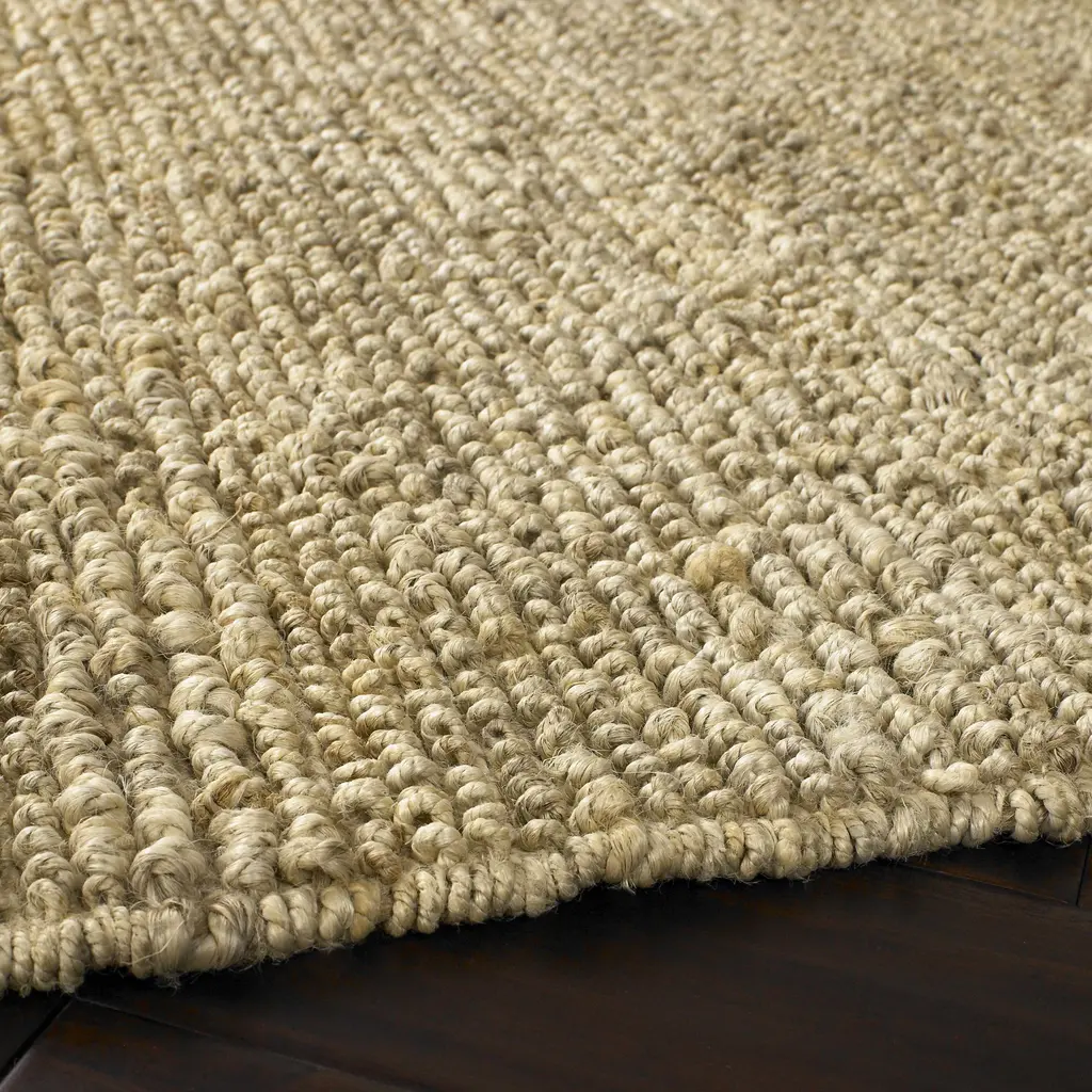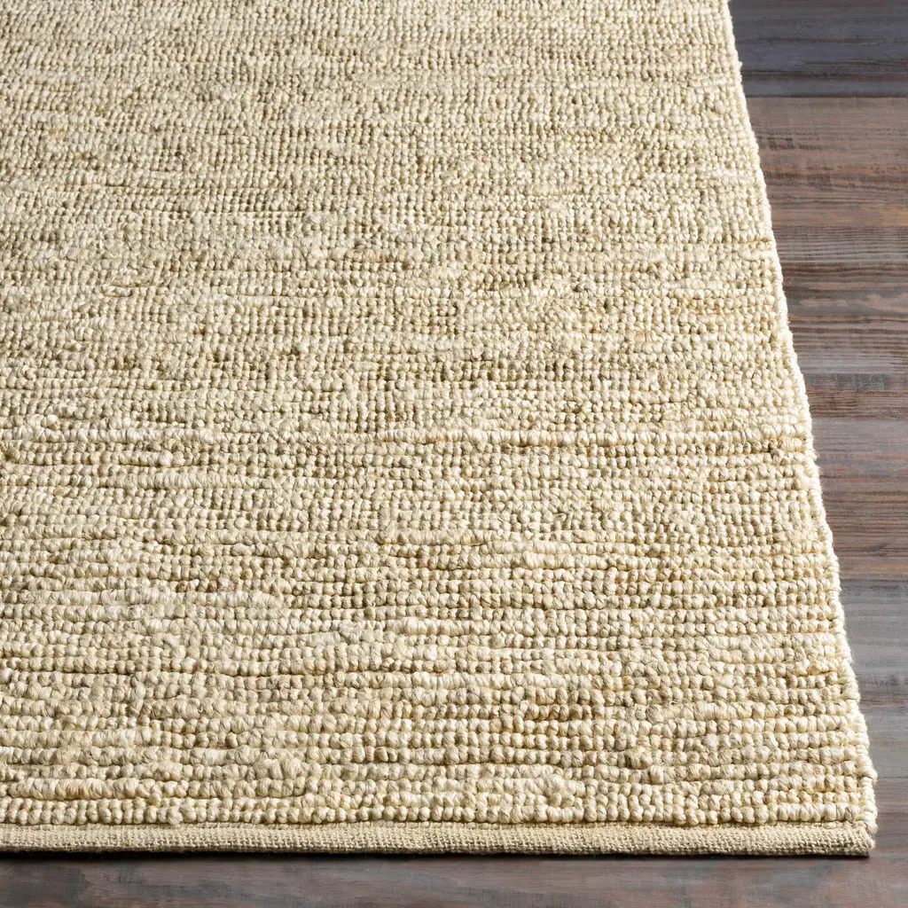 Collection: Germantown Colors: Ivory Construction: Hand Woven Material: 100% Jute Pile: Medium Pile Pile Height: 0.31" Styles: Transitional,Traditional Made In: India Thickness: 0.43" Price Range: $$$$$ (Affordable)