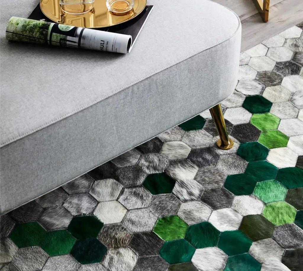 There’s no regrets from a long line of happy Art Hide customers who’ve made this stunning rug pride of place at home! Your future interior will be beautifully grounded with soft tones of luxurious cowhide, each varying slightly to form a natural work of art. The Angulo is quite simply an heirloom rug to enjoy forever.The Angulo is created from premium quality cowhide leather, sourced as a by-product, from our third generation Pakistan makers. It is cut to precise hexagonal shapes and then pieced together using commercial grade nylon thread. It has a ribbon edge finish.Art Hide cowhide rugs are stitched together using commercial grade nylon thread and feature a branded ribbon edge finish. They are built to last a lifetime.This rug can easily be customized to any colour, size or shape.Art Hide rugs are usually made to order. Please allow approximately 4 weeks for delivery.