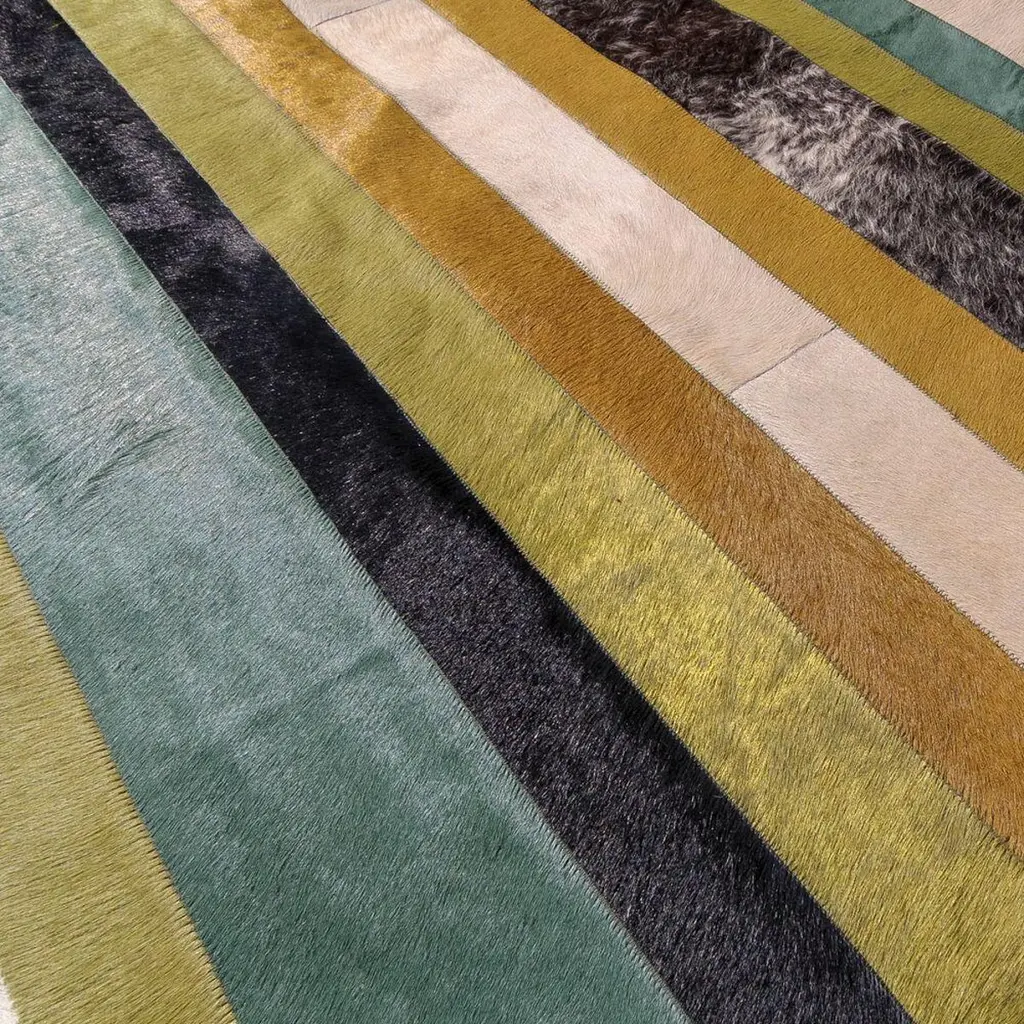 Green Ochre And White Stripes Nueva Raya Customizable Cowhide Runner Large