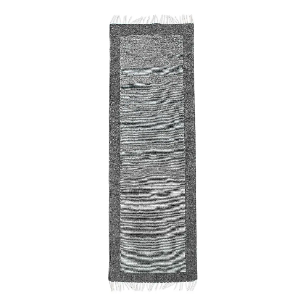 Grey And Ecru Wool Runner Rug From Oaxaca- Fine Lines