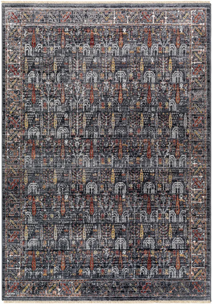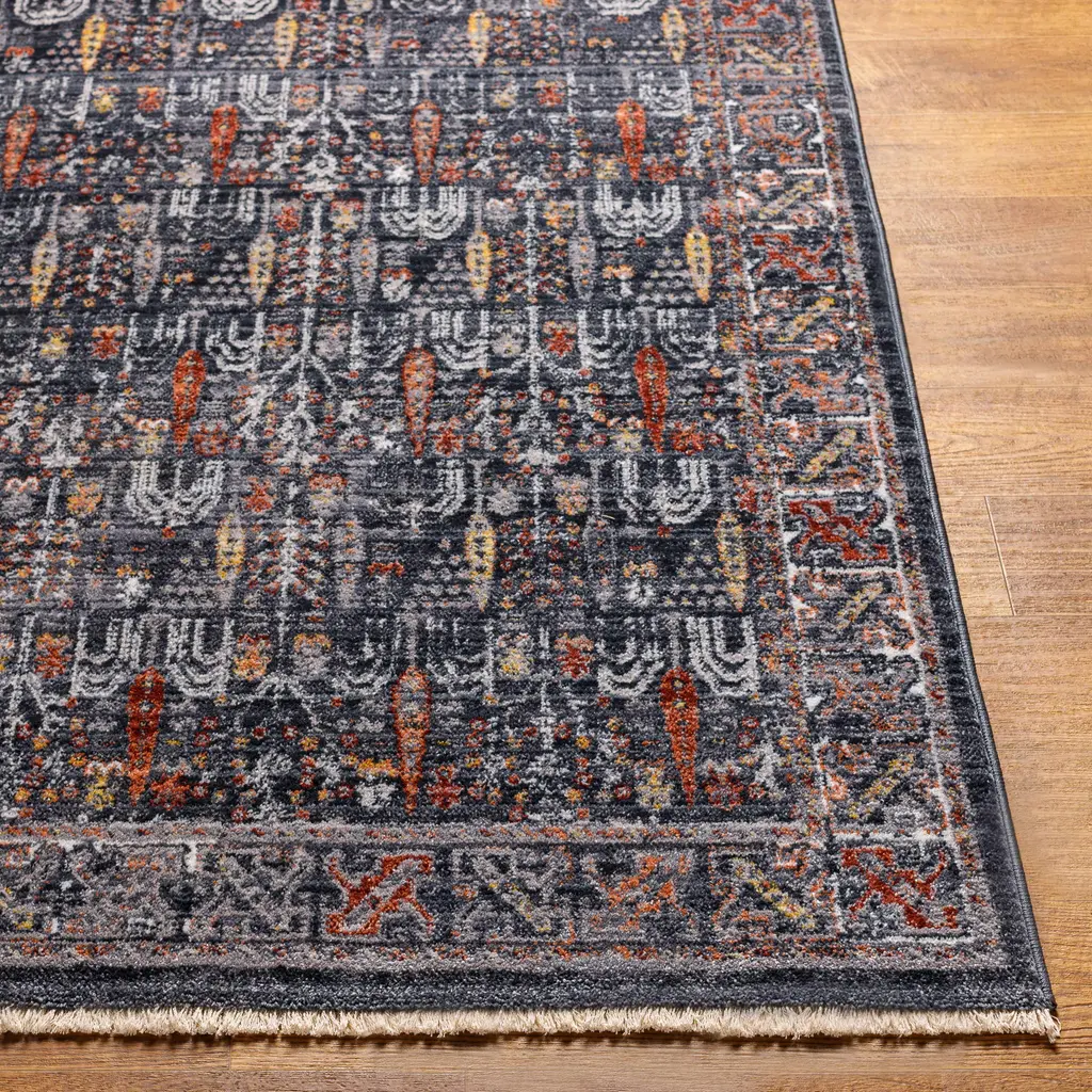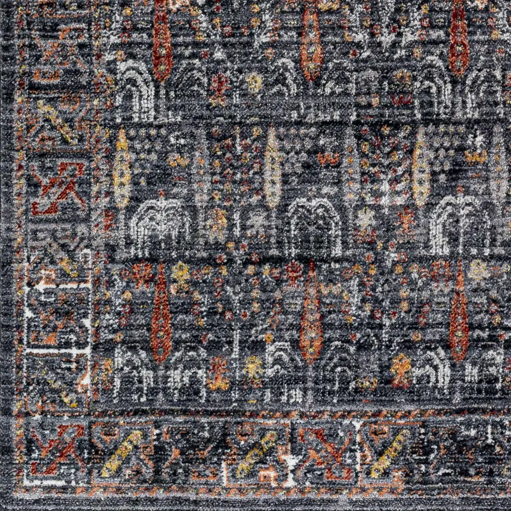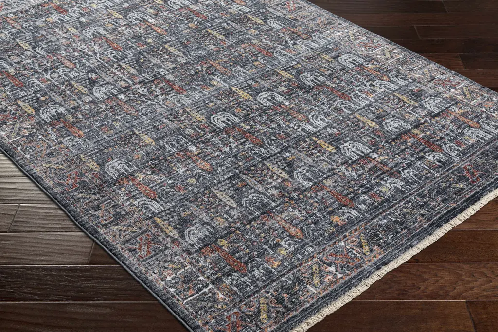 Collection: Guirang Colors: Black, Charcoal, Gray, Ivory, Denim, Lavender Construction: Machine Woven Material: 100% Polypropylene Pile: Medium Pile Pile Height: 0.35" Styles: Traditional Made In: Turkey Thickness: 0.43" Fringe Length: 1" Price Range: $$$$$ (Most Affordable)