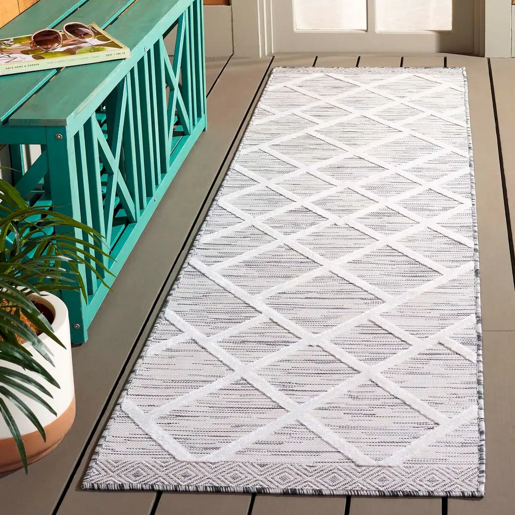 Introduce timeless elegance and functional design to your home with our exquisite runner rug. Expertly crafted in Turkey using a power-loomed technique, this rug is designed for both indoor and outdoor use, making it a versatile addition to any living space. Size and Material: With a comfortable 3/8" pile height, this rug is constructed with durability in mind, featuring a high-quality blend of 88% Polypropylene and 12% Polyester. This resilient combination ensures a soft touch, long-lasting wear, and easy maintenance. Pattern and Style: The rug displays a harmonious balance of shades, creating a chic and understated diamond geometric pattern that complements a variety of decor styles. The subtle design adds depth and texture to your room without overwhelming the space. Safety and Environmental Certification: Safety is paramount, which is why our rug is OEKO-TEX certified, guaranteeing that it is free from harmful substances and safe for all family members, including children and pets. Versatility: Whether you place it in your hallway, kitchen, or outdoor patio, this rug is designed to withstand the elements and high traffic areas while maintaining its appearance and comfort. Enhance the beauty and functionality of your home with this sophisticated runner rug, where exceptional quality meets timeless style.