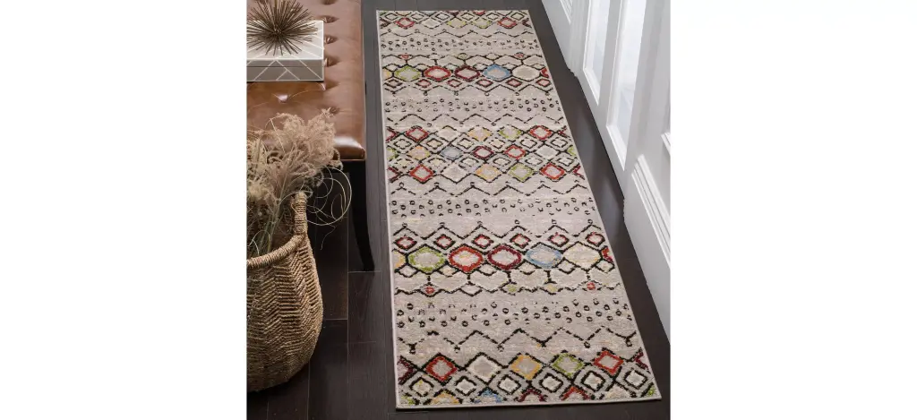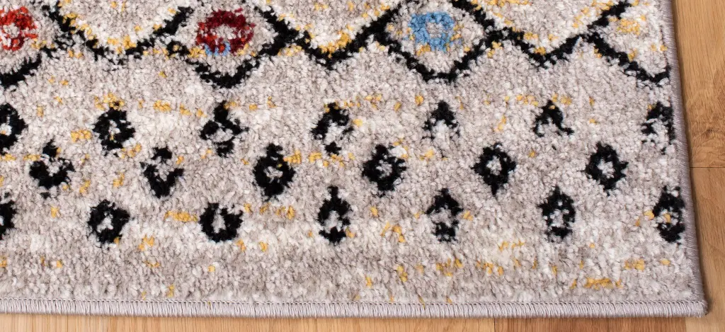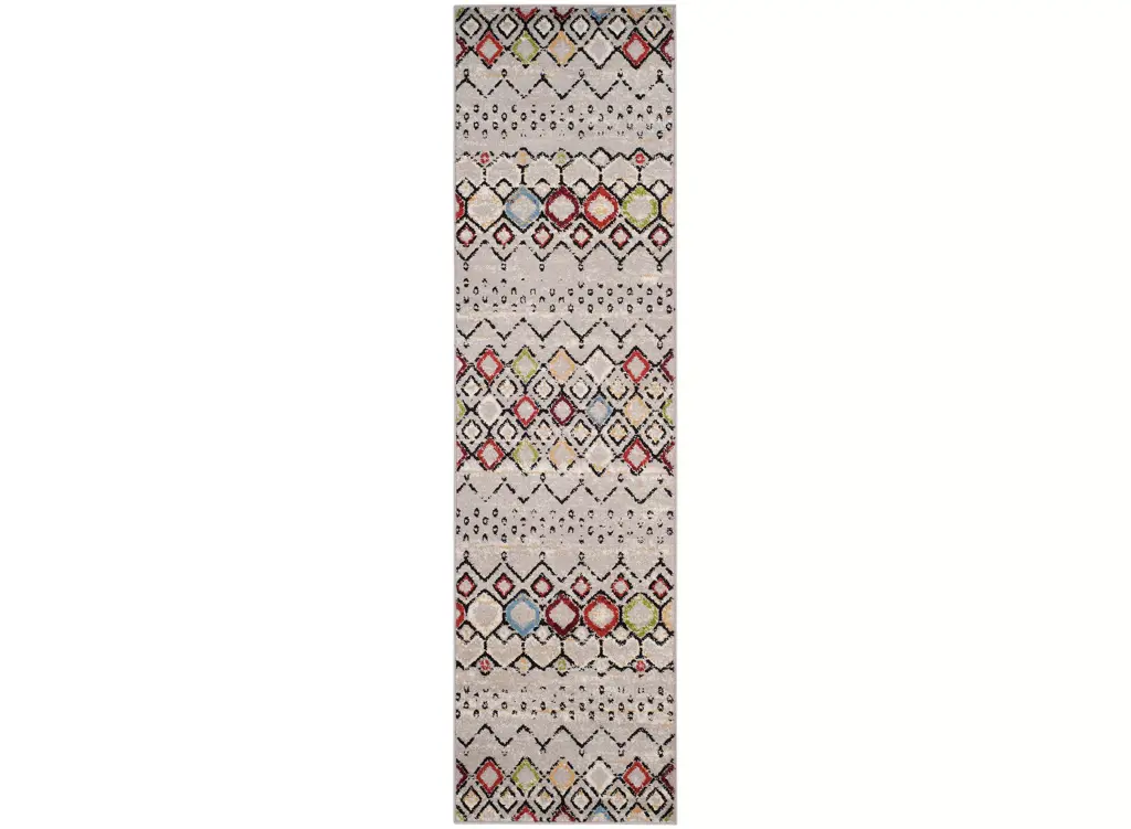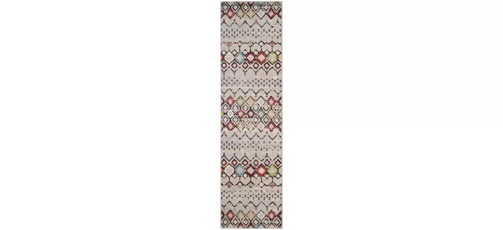 Expressive tribal patterns, etched in vivid hues and subtle highlights, accentuate the trendy design of these exotic Halen Gray Runner Rug floor coverings. Power loomed from soft yet durable synthetic yarns for long lasting color and a comfort-soft feel underfoot.