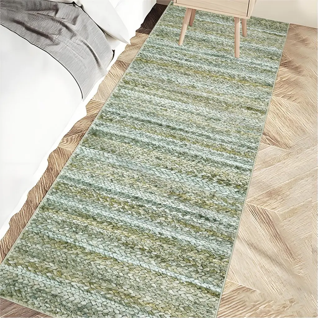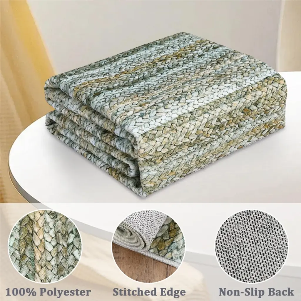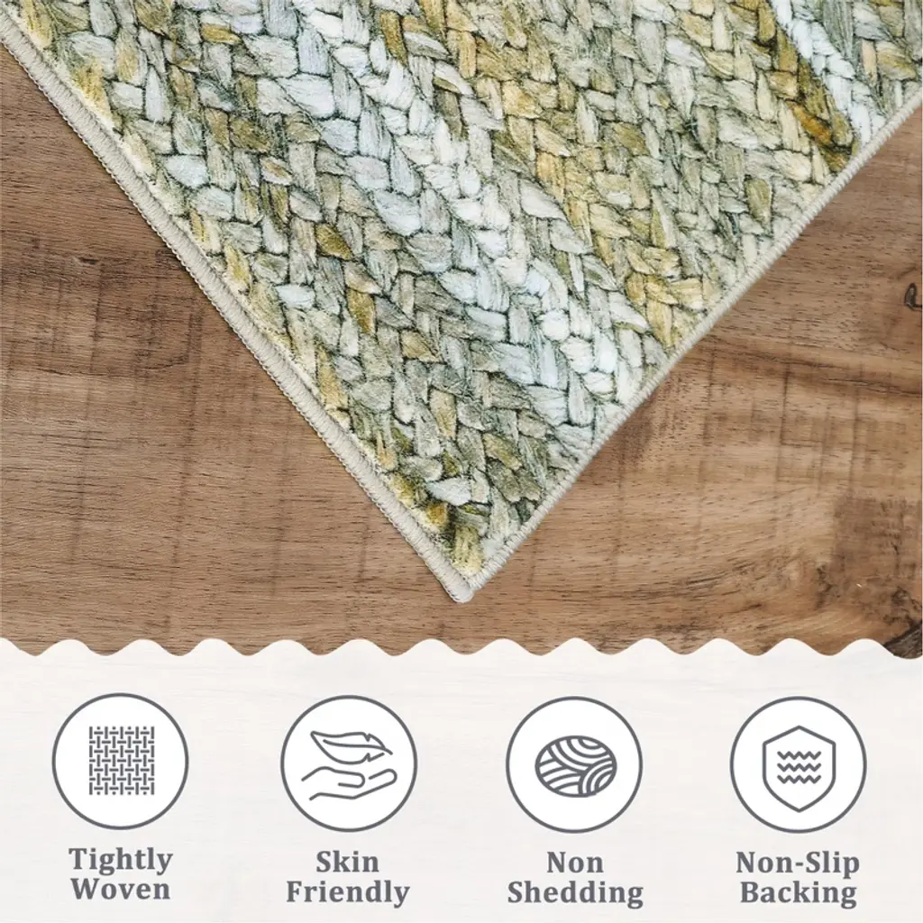 Discover the great blend of functionality and style with this remarkable washable area rug, expertly designed to enhance any room in your home. Its inviting soft texture underfoot makes every step a pleasure, while the elegant braided details add a distinctive flair that captivates the eye. Ideal for both lively family gatherings and tranquil evenings, this rug effortlessly brings warmth and charm to your living space, inviting you to create lasting memories.Highlights at a Glance:-- Non-Slip-- Folding-- Machine Washable & Easy Maintenance-- Non-Shedding & Stain Resistant-- Low Pile for High Traffic Areas-- Printed Braid Design-- Soft & Skin-FriendlySpecification:Material: 100% polyester, the rug backing was coated with TPR backingSize(Ft): 2x6 / 5x7 / 8x10 / 9x12 / 10x13Packing List:Rug x 1Note:This rug is not a genuine handmade braided rug; it is a polyester machine-woven rug featuring a braided print pattern.Simply wipe local stains with a wet rag and use a vacuum cleaner for daily maintenance.Deep cleaning is also possible, with the option to machine wash the rug, ensuring it remains fresh and clean.When you first get the carpet, you may notice some wrinkles or folds, but don't worry! Simply lay it flat on the floor and the creases will naturally disappear. You can use it with peace of mind learning that this is a normal process.