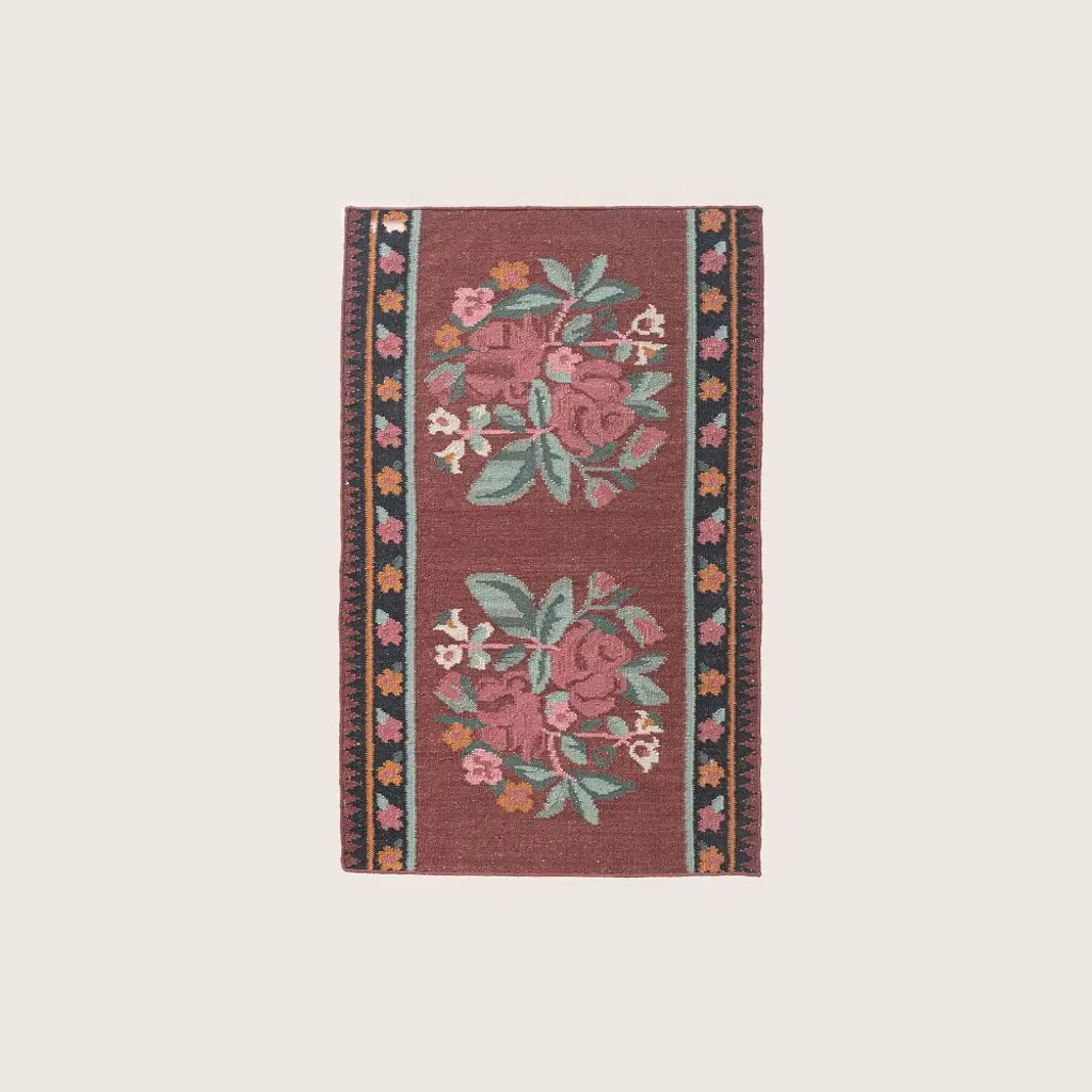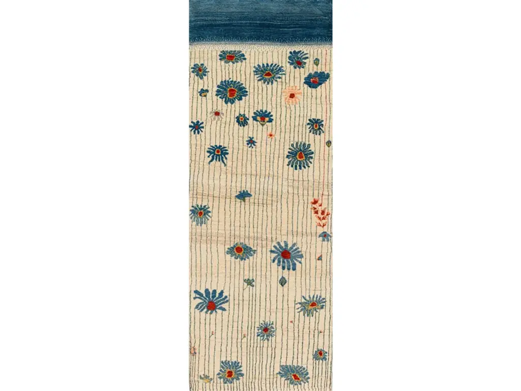 HARU NO HANA is a rectangular wool rug.Zollanvari Studio’s Ikebana Kyoto creations – a design that looks East to Japan and celebrates colour, nature, life – here takes an exotic turn. All things Japanese were all the rage in the late 19th century and greatly inspired and influenced the Art Nouveau and Art Deco movements. But the flow of inspiration worked both ways since these styles travelled back to Japan and in turn influenced meisen kimonos, which used abstract, floral and geometric designs in sophisticated colour combinations. Persian tribal art meets the art of Japanese textile design.