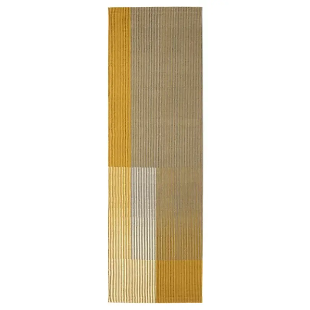 The Haze Runner from Nanimarquina illustrates the moments of haze in nature in a painterly way with layers of color, texture, and shape. Designer Cana Özgür comes to her pieces with a hands-on design approach. This approach guides the hand-loomed construction technique used on the runner. The piece sees artisans blending New Zealand and Italian wool for a luscious feel against the feet. The fine fibers contrast in color and lay on top of each other as geometric shapes. The overlapping fibers also create new hues that draw the eye in their subtlety. The textured linear pattern of the runner adds to its attractive quality from edge to edge.
