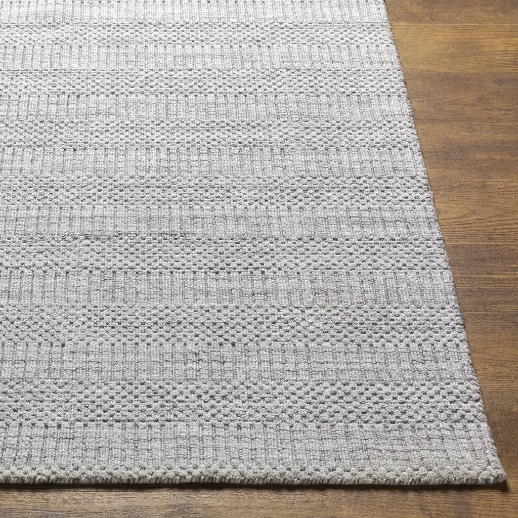 The simplistic yet compelling rugs from the Hickory Collection effortlessly serve as the exemplar representation of modern decor. With their hand knotted construction, these rugs provide a durability that can not be found in other handmade constructions, and boasts the ability to be thoroughly cleaned as it contains no chemicals that react to water, such as glue. Made with Recycled PET Yarn in India, and has Low Pile. Spot Clean Only, One Year Limited Warranty.