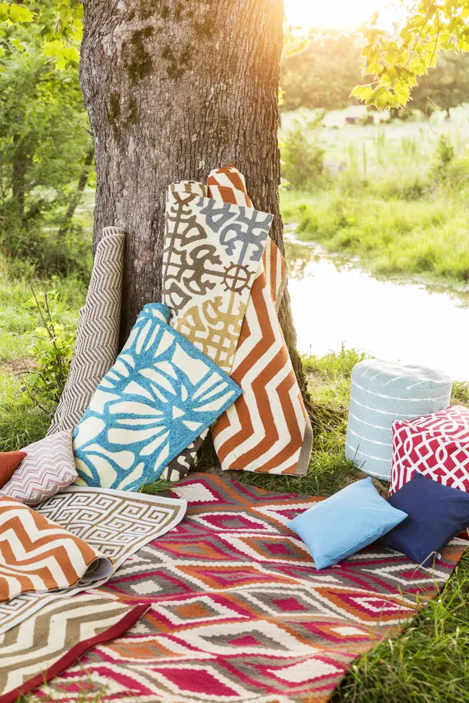 Collection: Hollytree Colors: Cream, Dark Red Construction: Hand Woven Material: Face: 100% PVC Pile: No Pile Styles: Outdoor Outdoor Safe: Yes Made In: India Thickness: 0.24" Price Range: $$$$$ (Affordable)