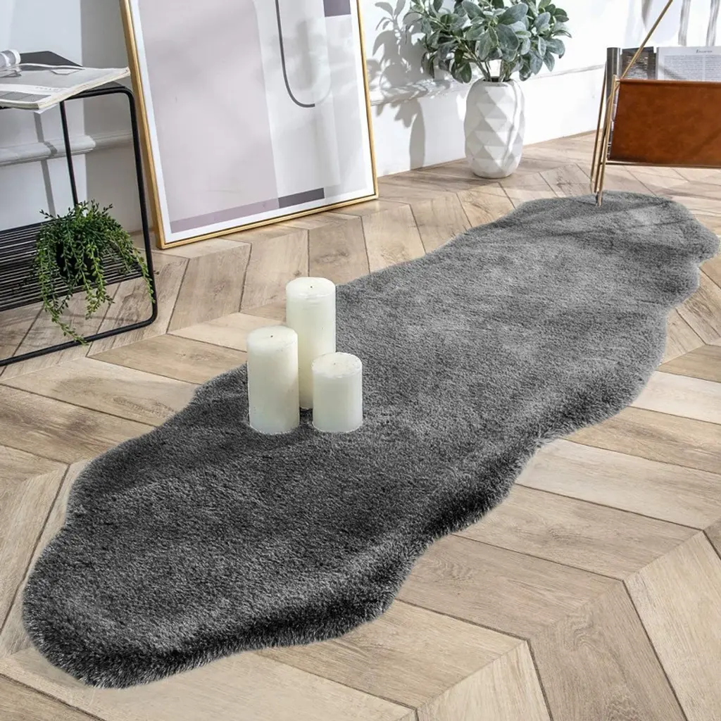 It’s time to treat yourself with a top-grade area rug that doesn’t harden after usage. This soft and fluffy area rug will be the first and last thing your feet will touch when you bath, sleep or climb on and off your couch.SUPER SOFT & PLUSH FAUX FUR: Feel the softness with your feet! Our top-grade thick faux rabbit fur area rug features a dense and super soft pile with ultra plushness. Our rugs are guaranteed to provide you with the best skin-feel and soothe the tiredness for your feet.FIRST AND LAST THING YOUR FEET TOUCH: It’s time to treat yourself with a top-grade area rug that doesn’t harden after usage. This soft and fluffy area rug will be the first and last thing your feet will touch when you bath, sleep or climb on and off your couch.PREMIUM BOTTOM DESIGN: We featured a non-slip leather-like bottom on the back surface of our mats, making it super soft sleek and will not slip away from the place, it can be featured on your floor, on your couch, as a floor mat and as a runner.EASY CARE AND CLEANING: Clean the rug with just a damp cloth, and dry flat. Please don’t soak in water, not applicable for wash machine or dryer, frequent vacuum cleaning recommended.