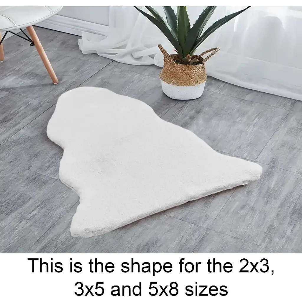Home Mart Goods Ivory Faux Rabbit Fur Fuzzy Soft Fluffy Plush Cozy Shaggy Area Rug - 2X3 Feet