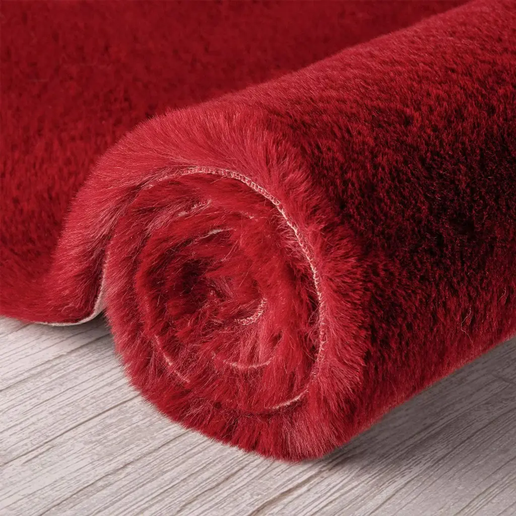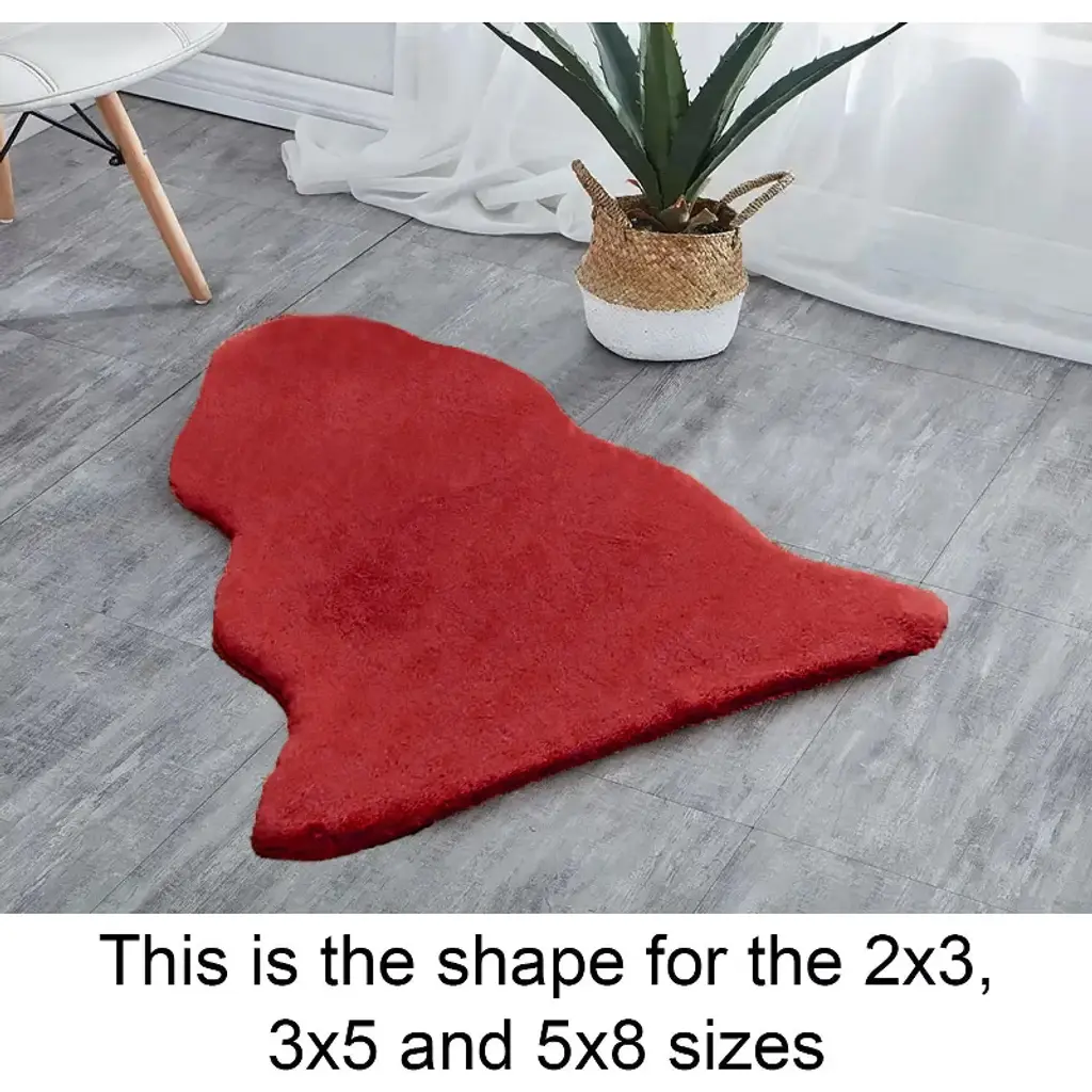 Home Mart Goods Red Faux Rabbit Fur Fuzzy Soft Fluffy Plush Cozy Shaggy Area Rug - 2X3 Feet