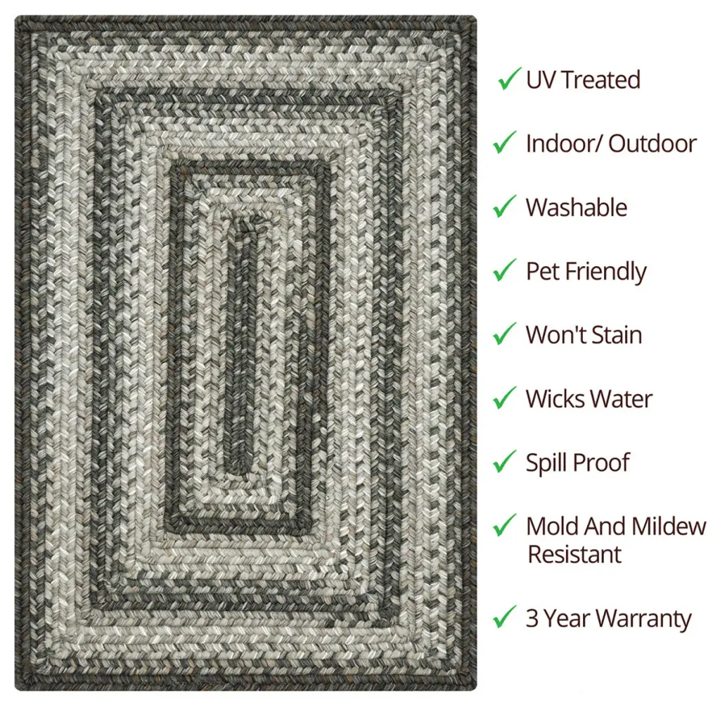 Homespice Decor - 22" x 72" Rectangular Graphite Ultra Durable Braided RunnerAn Updated Palette For Nearly Any Style Decor, The Graphite Ud Rug Is The Perfect Base For Decorating. With Its Relaxed Look And Intricate Braids, This Rug Can Dress Up Both Indoor And Outdoor Spaces With Casual, Relaxed Style.Ultra Durable Braided RugSize : 22" x 72"Rectangular ShapeDouble Sided BackingMaterial : 60% Polypropylene, 20% Viscose, 20% Polyester