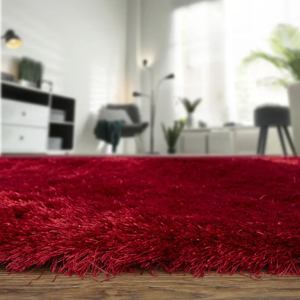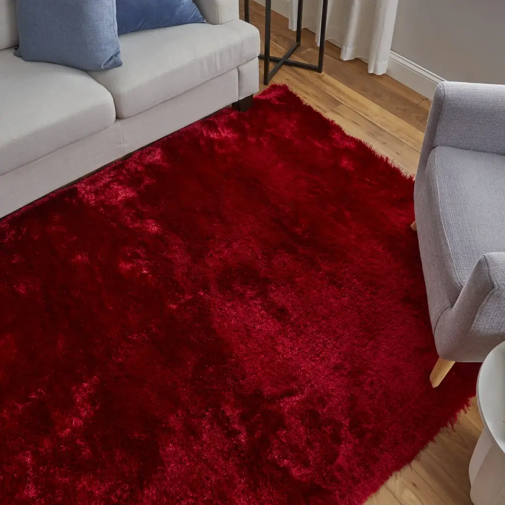 Collection: Indochine Colors: Red, Purple Construction: Hand Tufted Material: Face: 100%Polyester / Warp: Cotton Pile: High Pile Pile Height: 1.57" Styles: Contemporary,Luxury & Glam,Casual Backing: Cotton Made In: China Thickness: 1.57" Price Range: $$$$$ (Affordable)