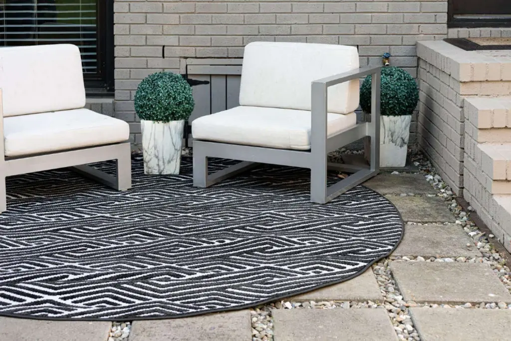 Claudia is a perfect addition for any outdoor oasis. Woven of polypropylene, the Claudia collection is weather resistant and power loomed to give the appearance of natural fibers. Designed with simple geometry, Claudia is simplicity in a beautiful package. If you prefer to stay inside or outside, Claudia is just the decor piece that you need.