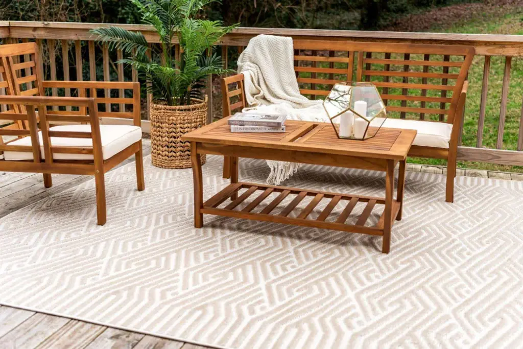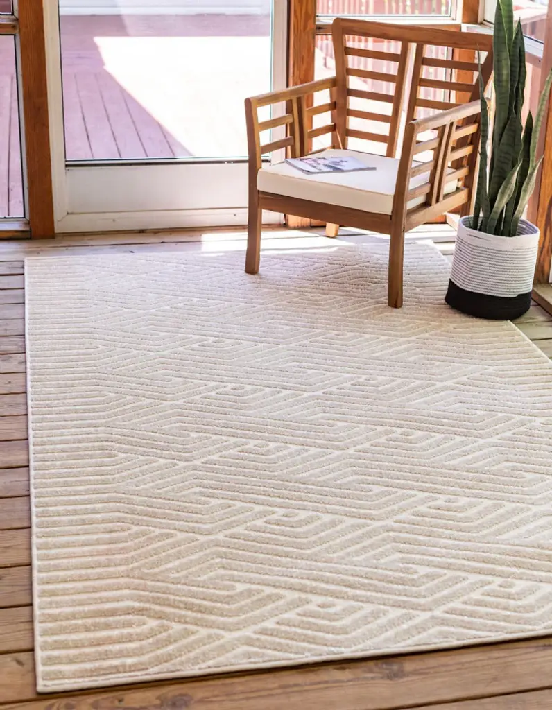 Claudia is a perfect addition for any outdoor oasis. Woven of polypropylene, the Claudia collection is weather resistant and power loomed to give the appearance of natural fibers. Designed with simple geometry, Claudia is simplicity in a beautiful package. If you prefer to stay inside or outside, Claudia is just the decor piece that you need.
