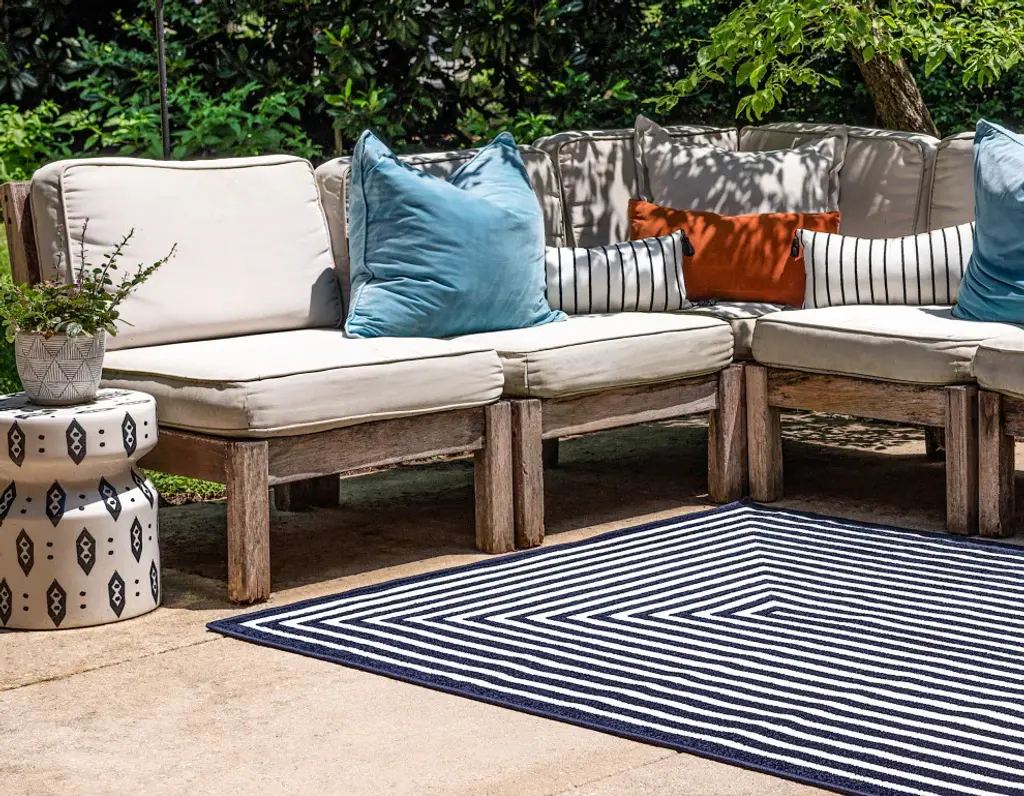 Claudia is a perfect addition for any outdoor oasis. Woven of polypropylene, the Claudia collection is weather resistant and power loomed to give the appearance of natural fibers. Designed with simple geometry, Claudia is simplicity in a beautiful package. If you prefer to stay inside or outside, Claudia is just the decor piece that you need.