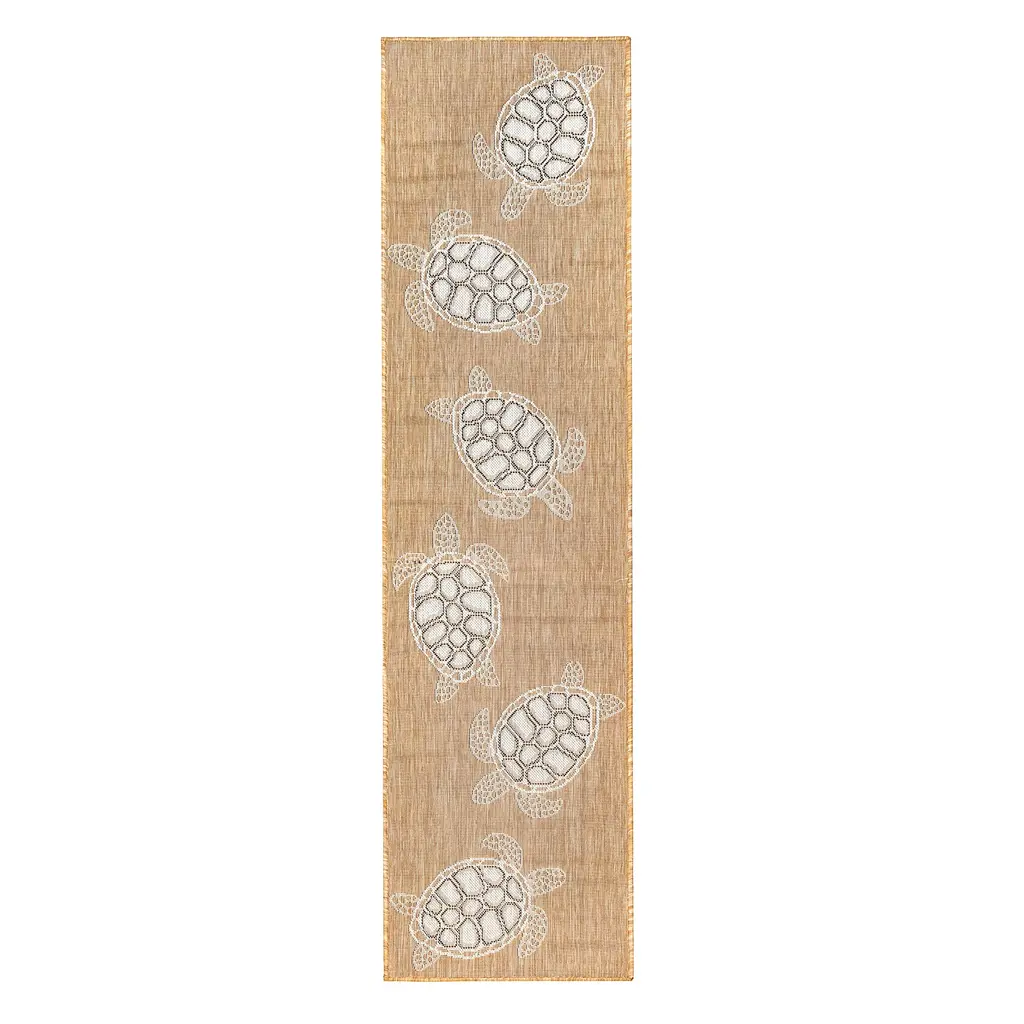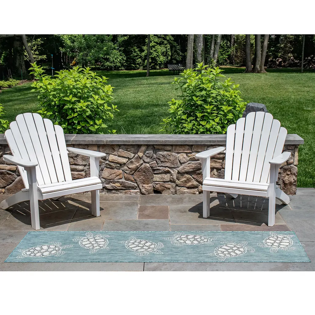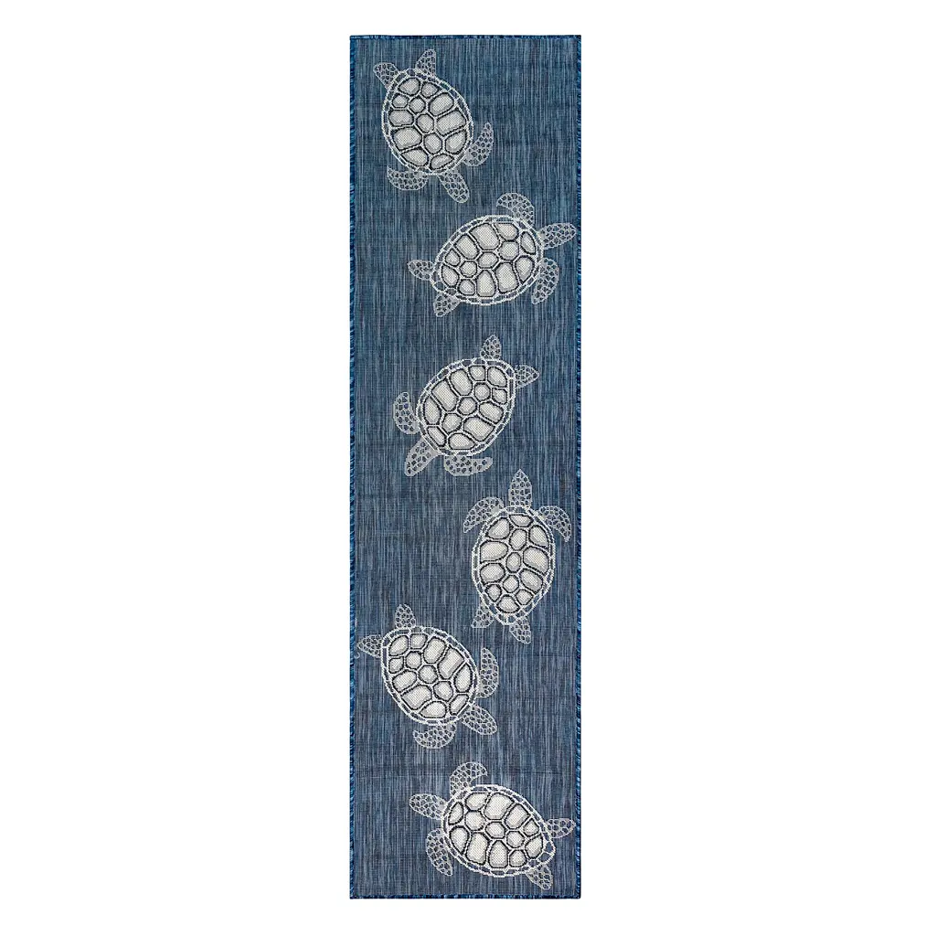 Indoor/outdoor Textured Sea Turtles Polypropylene Runner, 23" X 7'6"