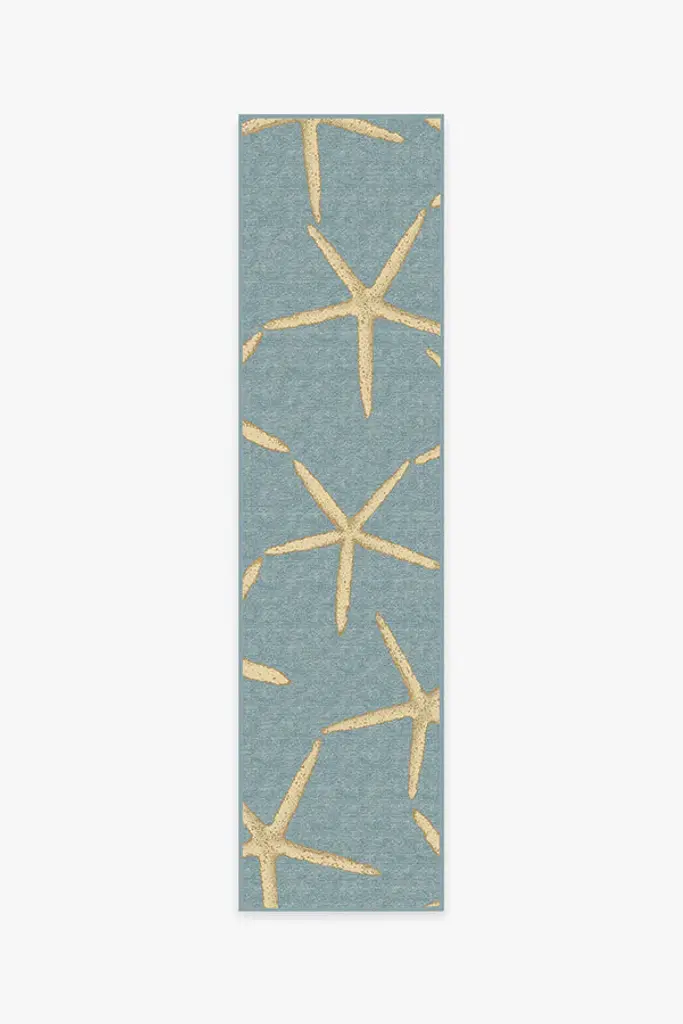 This Indoor/Outdoor Textured Sea Turtles Polypropylene Runner has the beauty and softness of a traditional pile rug, but it's made of 100% polypropylene to stand up to high traffic indoors and out. The whimsical sea turtle design mixes complementary colors to create a look that will fit with any setting or furniture while adding just a touch of tropical flair. The yarn is space-dyed in multiple shades per strand, giving it a dimensional look, greater detail in the design and the ability to blend beautifully with any style.This handsome runner is versatile, colorful and functional. Durable enough to withstand heavy traffic, kids and pets, it's perfect for any area: porch, patio, sun room, kitchen and more. Hose clean. Pattern varies slightly by size. Rug pile is approx. ¼"H. Sizes are approximate. Imported.