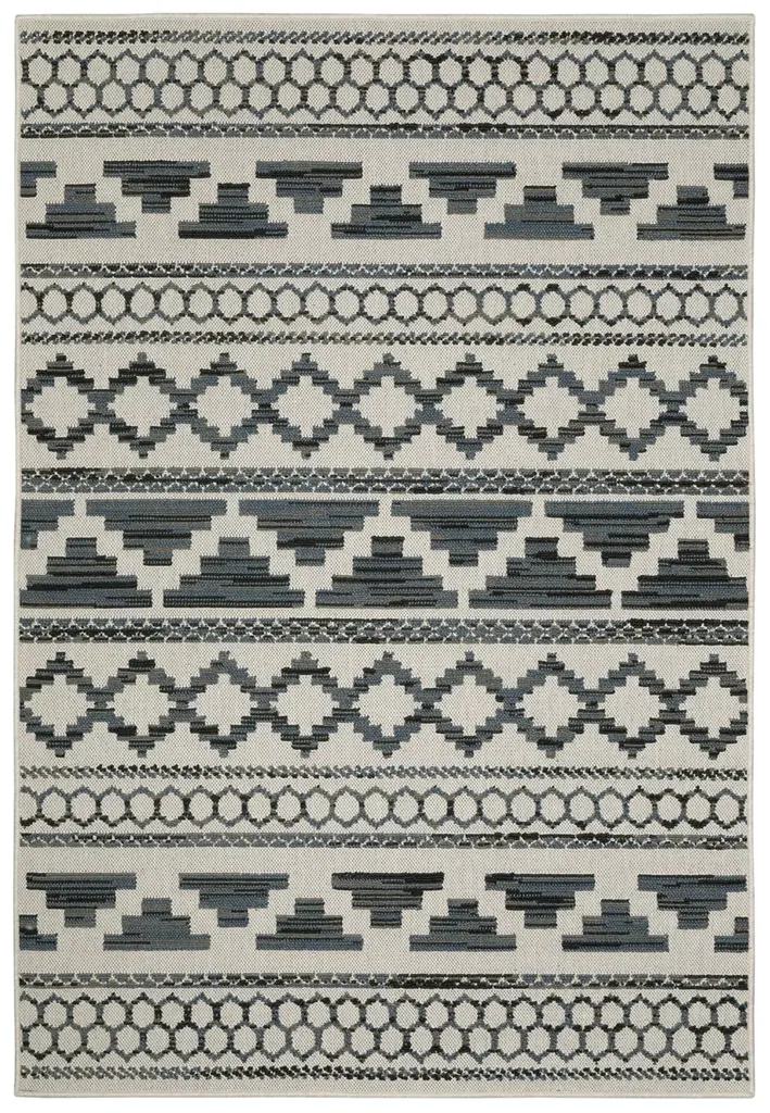 Our Indoor/Outdoor York Desert Polypropylene Rug adds a traditional touch to any indoor or outdoor space with classic design and shades of deep marine blue, dark charcoal and soft gray. Neutral colors make this rug ideal for any decorating style, from traditional to transitional and modern. The mix of geometric and global designs gives any space a sophisticated feel. This rug's unique construction features both flat and loop yarns, giving it texture and style. Machine-made from 100% UV-protected polypropylene, this rug boasts superior stain and moisture resistance. This rug has all the beauty of traditional indoor rugs with the durability to face the elements, making it ideal for high-traffic areas indoors and out; perfect for households with children and pets. The pile is approx. ⅛"H, perfect for under doors. Super-durable and easy to clean for today's active lifestyles. Imported.