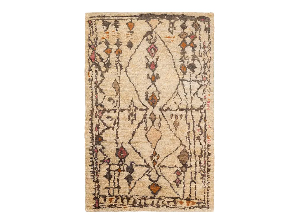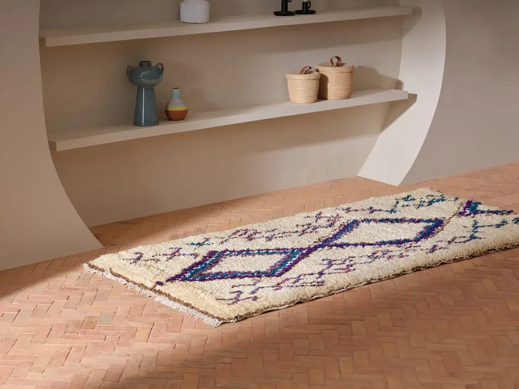 Our Moroccan pieces are each one-of-a-kind. Much of our collection was woven between 30 and 100 years ago, and curated by us. Other rugs in our collection are fresh off the loom and made with traditional techniques. Moroccan rugs don’t come with a key. As with any painting or poem, their motifs have many subjective interpretations. Originally made for personal use, these rugs took months to weave, documenting a shifting tide of events and emotions in the weaver’s life.