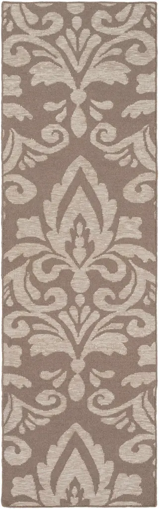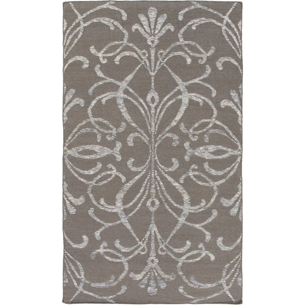 Collection: Ivybridge Colors: Taupe, Light Gray Construction: Hand Woven Material: 50% Wool,30% Viscose,20% Cotton Pile: No Pile Styles: Transitional,Traditional Made In: India Thickness: 0.16" Price Range: $$$$$ (Affordable)