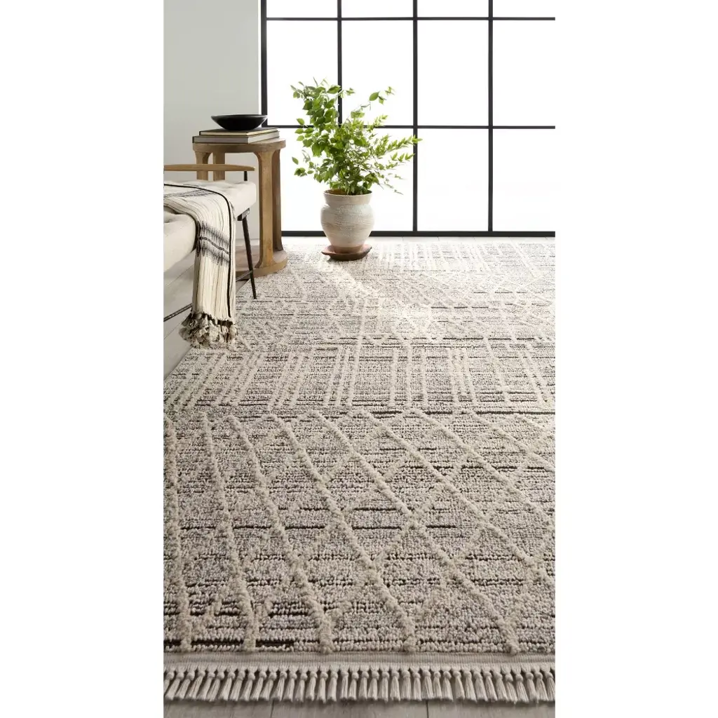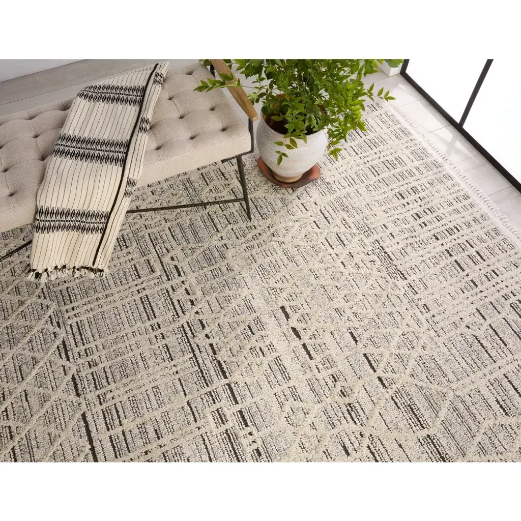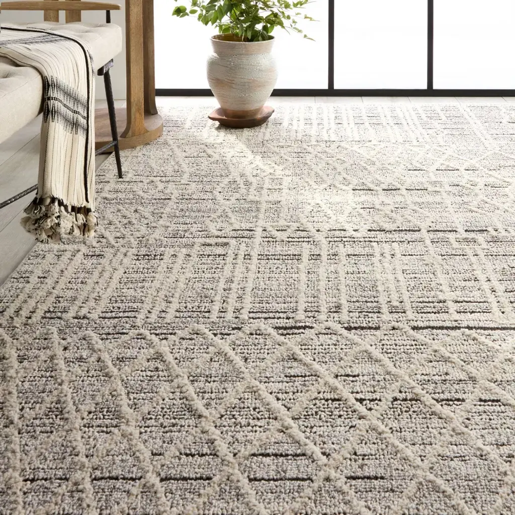 The Lore collection introduces an assortment of modern Moroccan motifs and unique texture that grounds spaces with statement-making style. The Caiya area rug features distressed trellis designs, cut and looped pile, and cream, fringe. The contrasting neutral tones of cream and gray offer the perfect anchor to contemporary design. This indoor rug thrives in medium and low traffic spaces of the home such as bedrooms, dining areas, formal living rooms, and guest areas.