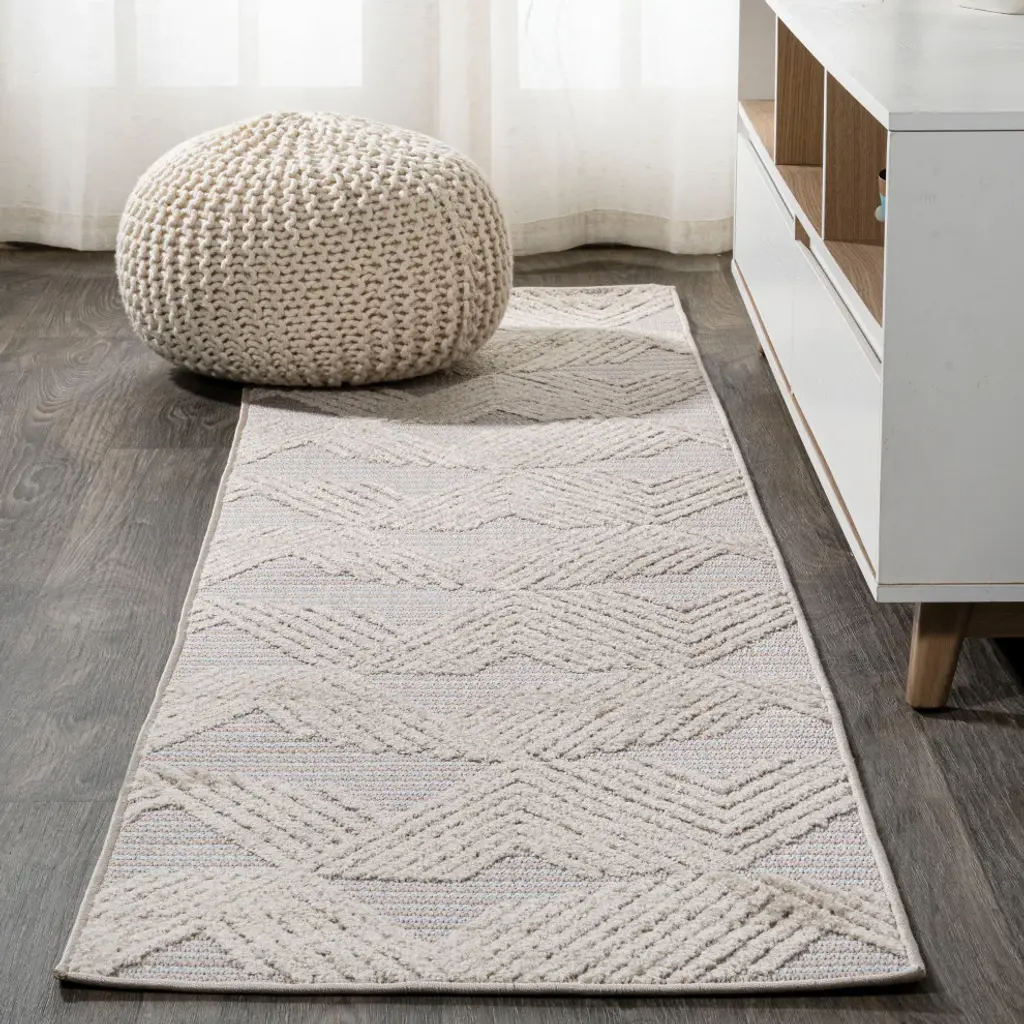 Inspired by Art Deco design, our jazzy geometric rug is power-loomed with a short pile. The all-over pattern is woven in a modern color palette. Add some graphic mid-century punch to your living room, dining room, entry, or bedroom with this easy-care rug.Features:• Power loomed with a .31" pile that''s soft and durable• The deep beige and ivory color scheme is a modern take on neutral, graphic abstract rugs• Made from easy-care polypropylene - just sweep, vacuum or hose down with mild soap and water• 100% Polypropylene• No backing, use of rug pad is recommended (sold separately)• Power Loomed in Turkey• Actual Dimension: 2 ft. X 10 ft.• Color: Beige• Thickness measures: 0.31 in.• Available in multiple sizes and/or colorsRug Care:• Vacuum regularly and spot clean as needed; avoid direct and continuous exposure to sunlight; use brushless vacuum; remove spills immediately; if liquid, blot with clean, undyed cloth by pressing firmly around the spill to absorb as much as possible; for hard to remove stains, professional rug cleaning is recommended; store in a dry, well ventilated area and rotate for consistent wear• Packing and shipping may cause temporary creases in rugs, which will flatten out after a week on the floor; to expedite the process, try back-rolling your rug before laying it down, and then allow ample time for the remaining creases to relax• Please Note: Due to differences in monitors, some rug colors may vary slightly. Lengths and widths may vary from the published dimensions. Patterns may vary slightly according to shape and size selected.About us:Style your floors with JONATHAN Y. By combining fine craftsmanship and design, this New York creative studio is bringing fashion to your floors. The collection mixes sustainable organic materials, vibrant colors and trend worthy styles to create JONATHAN Y''s distinctive catalog of rugs.