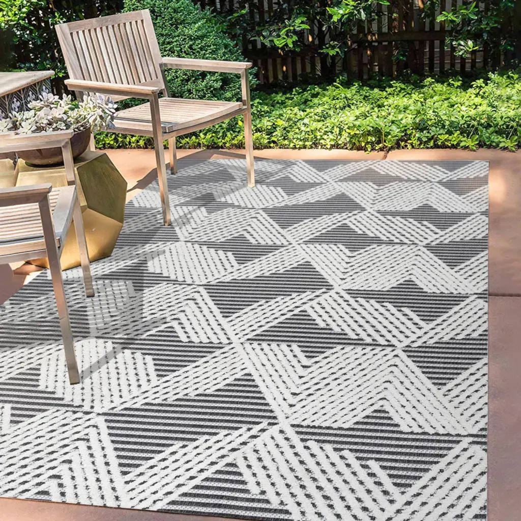 Jazz Pile Art Deco Geometric Indoor/outdoor Runner Rug, Black/ivory, 3'x5'