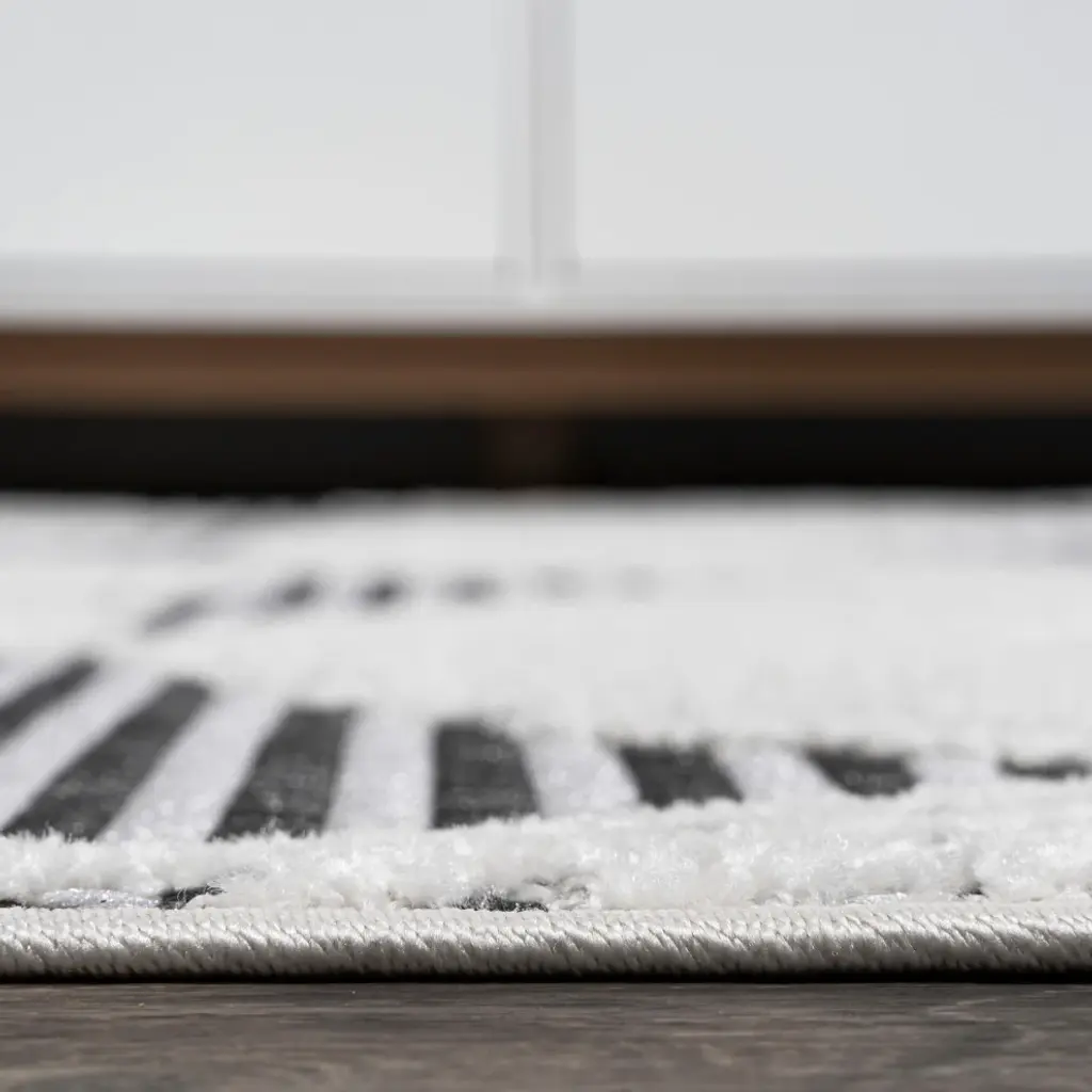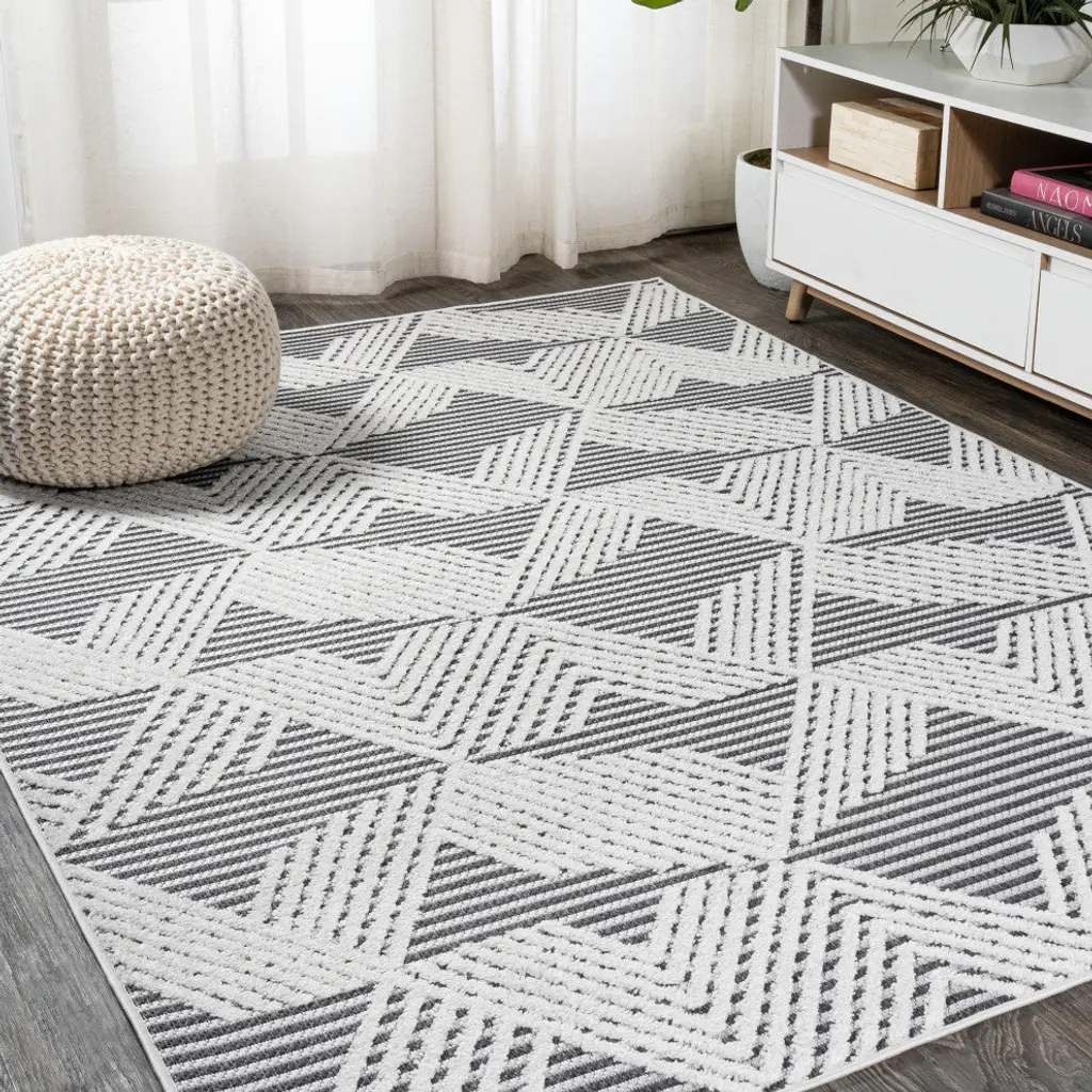 Inspired by Art Deco design, our jazzy geometric rug is power-loomed with a short pile. The all-over pattern is woven in a modern color palette. Add some graphic mid-century punch to your living room, dining room, entry, or bedroom with this easy-care rug. Features:• Power loomed with a 0. 31" pile that''s soft and durable• The deep gray and ivory color scheme is a modern take on neutral, graphic abstract rugs• Made from easy-care polypropylene - just sweep, vacuum or hose down with mild soap and water• 100% Polypropylene• No backing, use of rug pad is recommended (sold separately)• Power Loomed in Turkey• Actual Dimension: 3 ft. 11 in. x 6 ft. • Color: Black/Ivory• Thickness measures: 0. 31 in. • Available in multiple sizes and/or colorsRug Care:• Vacuum regularly and spot clean as needed; avoid direct and continuous exposure to sunlight; use brushless vacuum; remove spills immediately; if liquid, blot with clean, undyed cloth by pressing firmly around the spill to absorb as much as possible; for hard to remove stains, professional rug cleaning is recommended; store in a dry, well ventilated area and rotate for consistent wear• Packing and shipping may cause temporary creases in rugs, which will flatten out after a week on the floor; to expedite the process, try back-rolling your rug before laying it down, and then allow ample time for the remaining creases to relax• Please Note: Due to differences in monitors, some rug colors may vary slightly. Lengths and widths may vary from the published dimensions. Patterns may vary slightly according to shape and size selected. About us:Style your floors with JONATHAN Y. By combining fine craftsmanship and design, this New York creative studio is bringing fashion to your floors. The collection mixes sustainable organic materials, vibrant colors and trend worthy styles to create JONATHAN Y''s distinctive catalog of rugs.