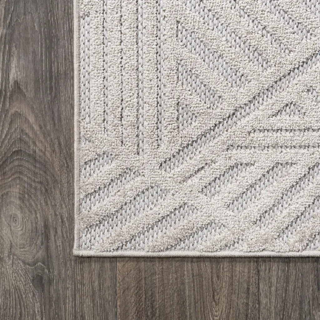 Jordan High-Low Pile Art Deco Geometric Indoor/outdoor Beige 2X8 Ft Runner Rug