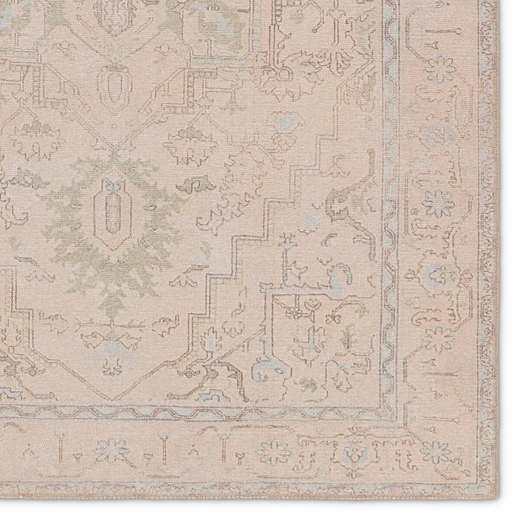 This grounding area rug boasts a classic ornate pattern in earthy tones of beige, light blue, sage, and deep brown. Printed on soft polyester, for a low-pile, durable finish, this boho-chic rug brings vibrancy and vintage vibes to any space.