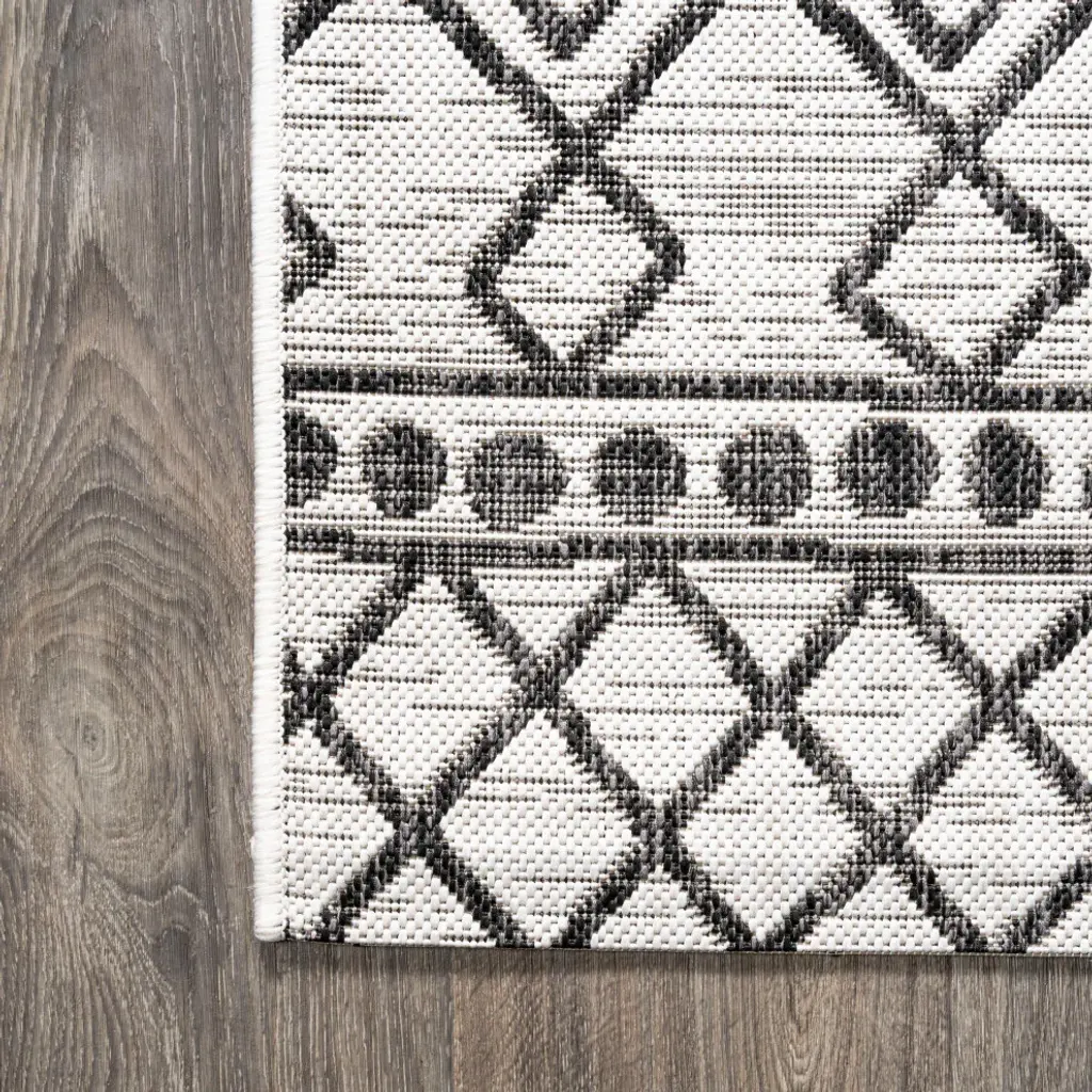 Kafel Tribal Bohemian Indoor/outdoor Ivory/black 2'x8' Runner Rug