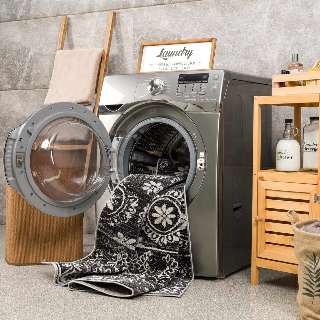 Kahraman Black & White Washable Rug - 2'7" X 7'3" Runner