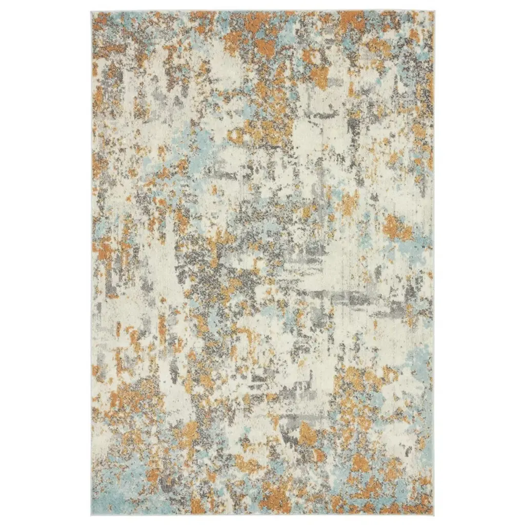 Stormy clouds of watery blue, dove grey, tobacco brown and neutral beige color collide in the explosive style of Karastan Rugs' Marseille Area Rug. Distressed details and eroded color techniques reveal thoughtful detail and the artistic influences of this abstract style. A modern marriage of textures, the subtle shimmer of viscose is woven alongside soft and stain resistant premium polyester in the debuts of Karastan Rugs' new Tryst Collection. Meticulously constructed using premium materials, Karastan rugs offer plush softness, superior strength stain resistance, and enduring durability that thrives in high traffic areas. Available in scatters, runners, and popular sizes such as 5x8 and 8x10, this area rug is an excellent choice for adding style to a variety of spaces in your home.